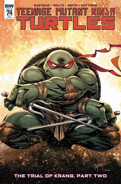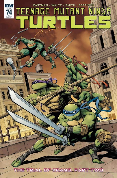 - Les couvertures des TMNT (Vol. 5) #73 à TMNT (Vol. 5) #75, qui forment l’arc Trial of Krang, sont une fresque réalisée par Cory Smith. S’il ne s’agit que de trois numéros, le dernier, comportant 48 pages possède une double couverture. C’est la quatrième fois que les couvertures principales de ce comic forment une fresque, après Vengeance, Bebop & Rocksteady destroy everything et Dimension X. À cela, on peut rajouter les covers subscriptions d’Utrom Empire dessinées par Nick Pitarra.