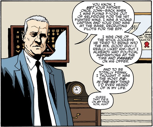 À l’heure des technologies, des téléphones portables et autres moyens de communication, la presse s’emparerait bientôt de l’information et la panique prendrait New York et la Terre. Ils devaient agir au plus vite, raison pour laquelle Bishop demandait plus de soldats et de moyens pour attaquer les triceratons. Il savait qu’ils pouvaient y parvenir, l’Earth Protection Force était prête à intervenir. Le sénateur Lawson, chargé de la défense du territoire, regardait ses insignes militaires, se souvenant de sa jeunesse dans les années 60-70, lorsqu’il n’était encore qu’un capitaine. Le père de Bishop tentait de recruter de nouveaux militaires pour son organisation. Lawson était l’un de ceux à qui il avait fait une proposition. Le futur sénateur avait refusé, doutant du sérieux de l’organisation. À cette époque, il aspirait déjà à un rôle politique majeur. Il appréciait le père de Bishop et se rendait à présent compte ô combien il avait raison. L’Earth Protection Force aurait tous les moyens désirés au plus vite.
