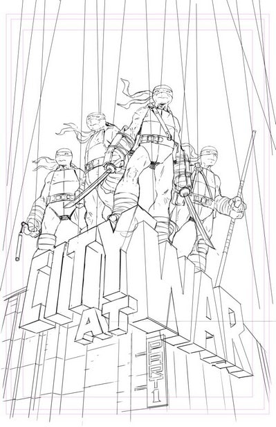 Le titre « City at war » est un hommage à l’arc City at war, qui concluait en 13 numéros le premier volume de Mirage Publishing. Il marquait également le retour de Peter Laird et de Kevin Eastman au scénario et au dessin, après de nombreuses années à l’écart des comics, traitant de la licence et du marketing.