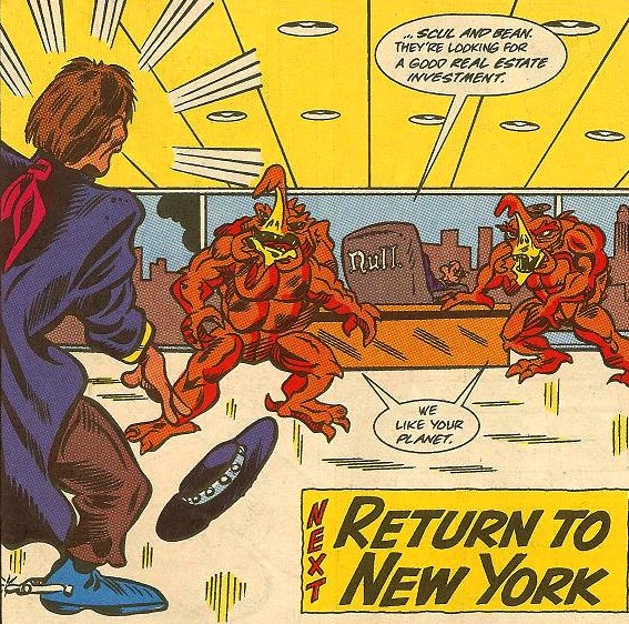 À New York, M. Null s’apprêtait à recevoir Kid Terra pour rendre des comptes sur l’échec de l’opération « profondeur ». Mais avant tout, il devait lui présenter leurs nouveaux associés : Scul et Bean…