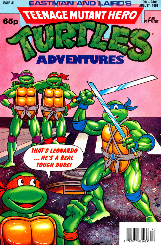 - Couverture magazine « Teenage Mutant Hero Turtles #41 », Fleetway (Grande-Bretagne, 1991) – Dessinateur inconnu. Édition britannique sortie entre le 10 – 23 août 1991.