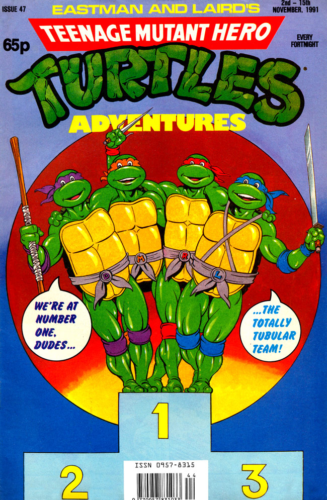 - Couverture magazine « Teenage Mutant Hero Turtles #47 », Fleetway (Grande-Bretagne, 1991) – Dessinateur inconnu. Édition britannique sortie entre le 2 au 15 novembre 1991.