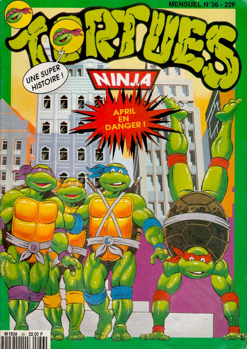 - Couverture magazine « Tortues Ninja #36 », Éditions Tournon (France, 1993 ou 1994 – Dessinateur inconnu. Édition française sortie en 1993 ou 1994.