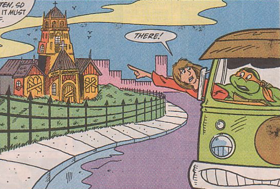 Après quatre heures de route, les tortues arrivaient à Innsmouth à bord du Party wagon. La ville était déserte, mais n’avait pas l’air pour autant d’être un repaire de bandits.