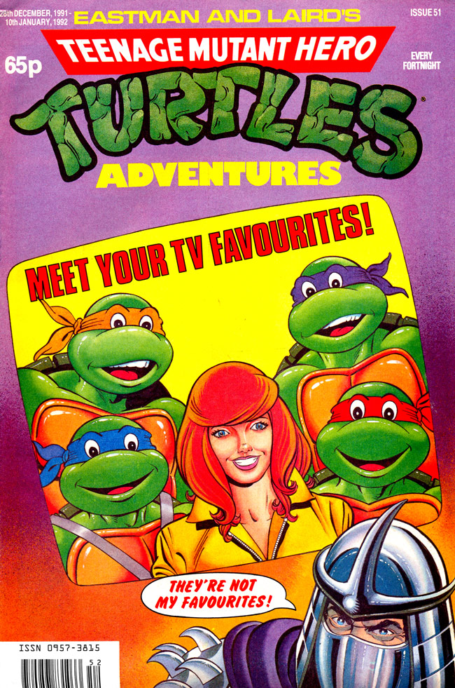 - Couverture magazine « Teenage Mutant Hero Turtles #51 », Fleetway (Grande-Bretagne, 1991) – Dessinateur inconnu. Édition britannique sortie entre le 28 décembre 1991 – 10 janvier 1992.