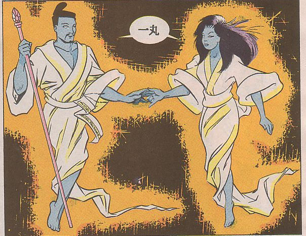 La légende japonaise racontée par Splinter est réelle. Izanagi et Izanami étaient des enfants des dieux. Après avoir créé la lune et le soleil, ils créèrent la première île du Japon, à l’aide d’une lance possédant des pierres précieuses en son extrémité. Ils s’y établirent et firent des enfants, allégorie des îles japonaises.