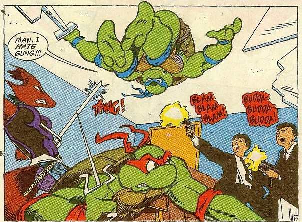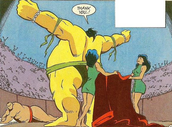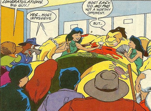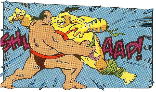 - Le combat de sumo est organisé par le Stump International Wrestling, le comité intergalactique créé par Stump et pour qui les tortues ont combattues sur son astéroïde (TMNT A. #7).