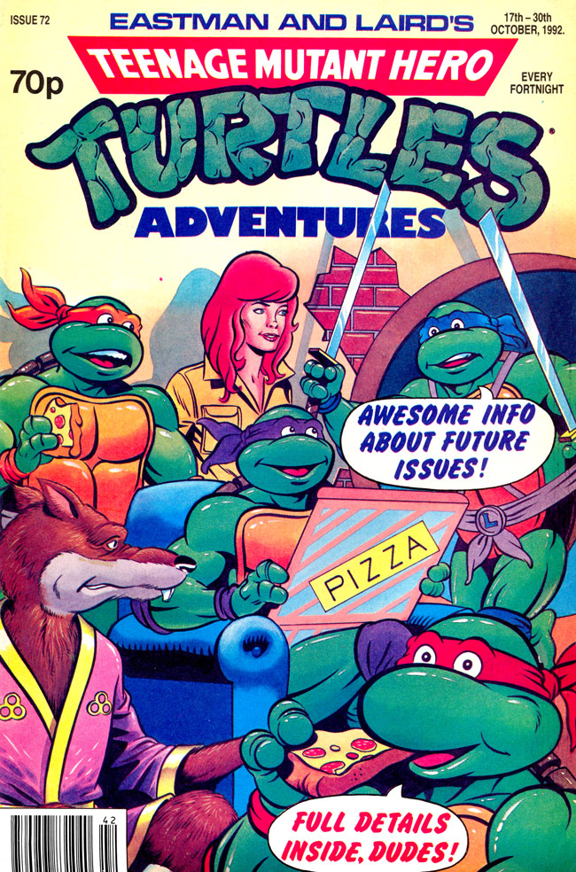 - Couverture magazine « Teenage Mutant Hero Turtles #72 », Fleetway (Grande-Bretagne, 1992) – Dessinateur inconnu. Édition britannique sortie entre le 17 et le 30 octobre 1992.