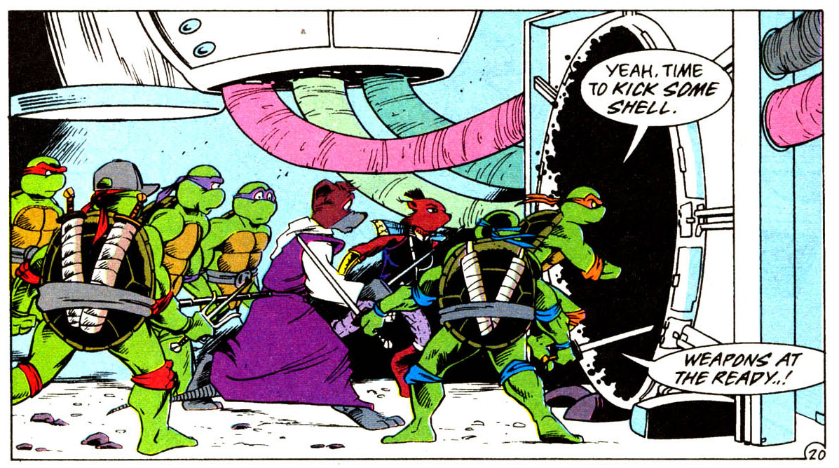 - Shredder suit Armaggon dans le temps et délaisse totalement Baxter Stockman, dont on ignore le devenir. Cette scène sera vue de nouveau et modifiée dans le TMNT A. #77.