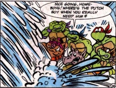 - Ce numéro est le premier s’émancipant du dessin animé, initié par TMNT Adventures en août 1988. Si le projet était de continuer à adapter la série, les scénarios et les images des épisodes tardaient à arriver et il fut donc décidé de poursuivre à travers une histoire originale.
