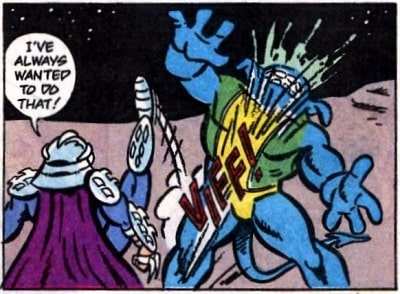 C’est ainsi que Ryan Brown et Dean Clarrain arrivèrent, pour apporter du sang neuf au titre, qui est sorti en octobre 1989. L’histoire autour de l’œil de Sarnath n’a quant à elle pas connu de fin à ce stade de l’histoire, et se poursuivra par la suite, dans le TMNT A. #47. Les scénaristes en ont profité pour apporter certains messages engagés, notamment à vocation écologique. Ici, l’accent est mis sur la fragilité des raies manta, espèce en danger, et de la pollution, tant des côtes que des fonds marins. En interview pour Multiversity Comics, on apprend que c’est Ryan Brown qui fit venir Dean Clarrain pour scénariser ce numéro. Ce dernier n’avait aucune connaissance de l’univers des TMNT et principalement du dessin animé.