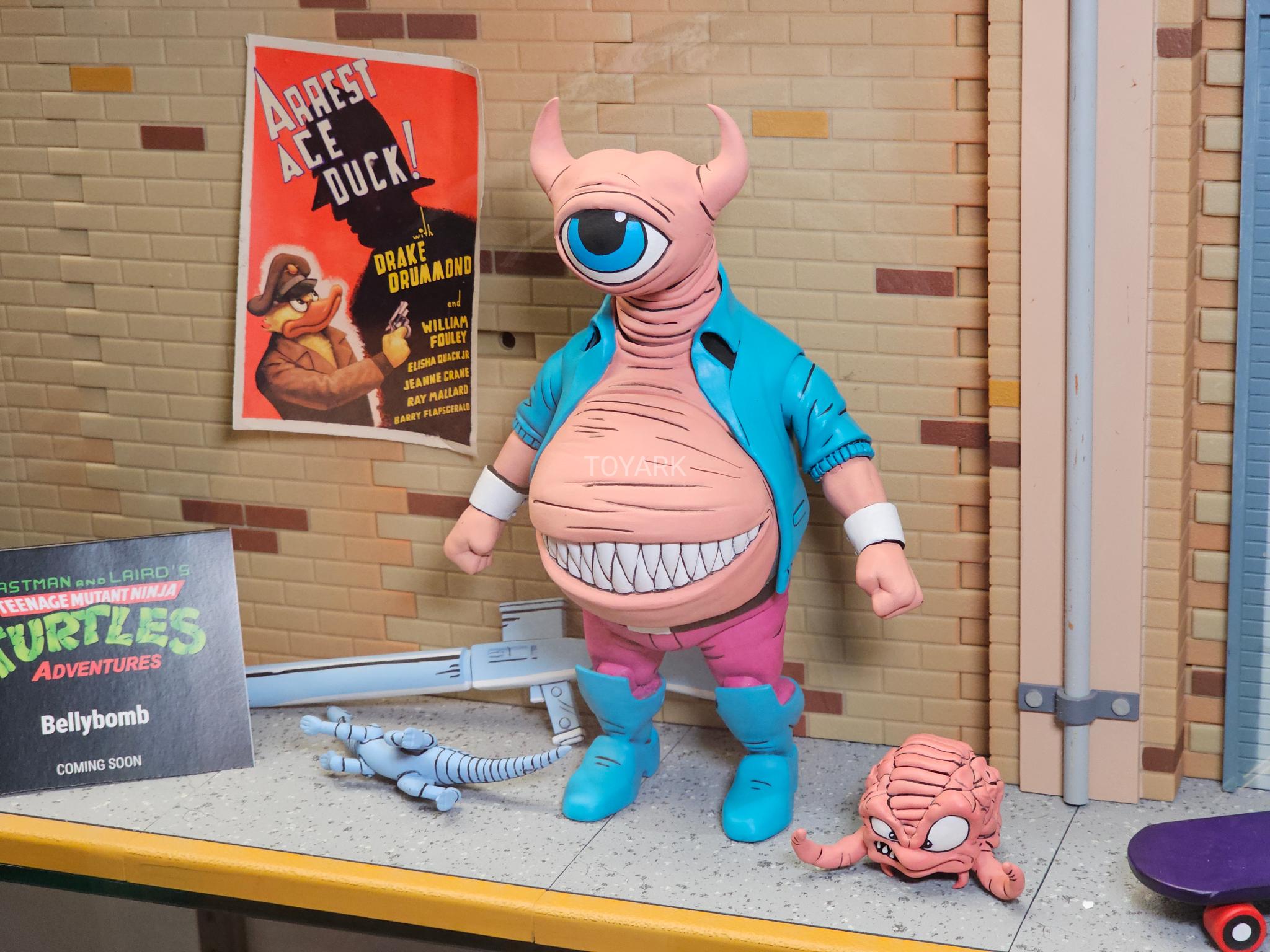 Bellybomb était l’une des premières figurines présentées par NECA pour la gamme TMNT Adventures lors de la SDCC 2023. Le personnage est accompagné de Krang, tous deux prisonniers de la planète Morbus à partir du TMNT A. #23. Sculpté par l’artiste Brodie Perkins, le prototype numérique du cyclope extraterrestre a été partagé sur son Instagram. Krang a quant à lui été sculpté par l’artiste Thomasz Rozejowski.
