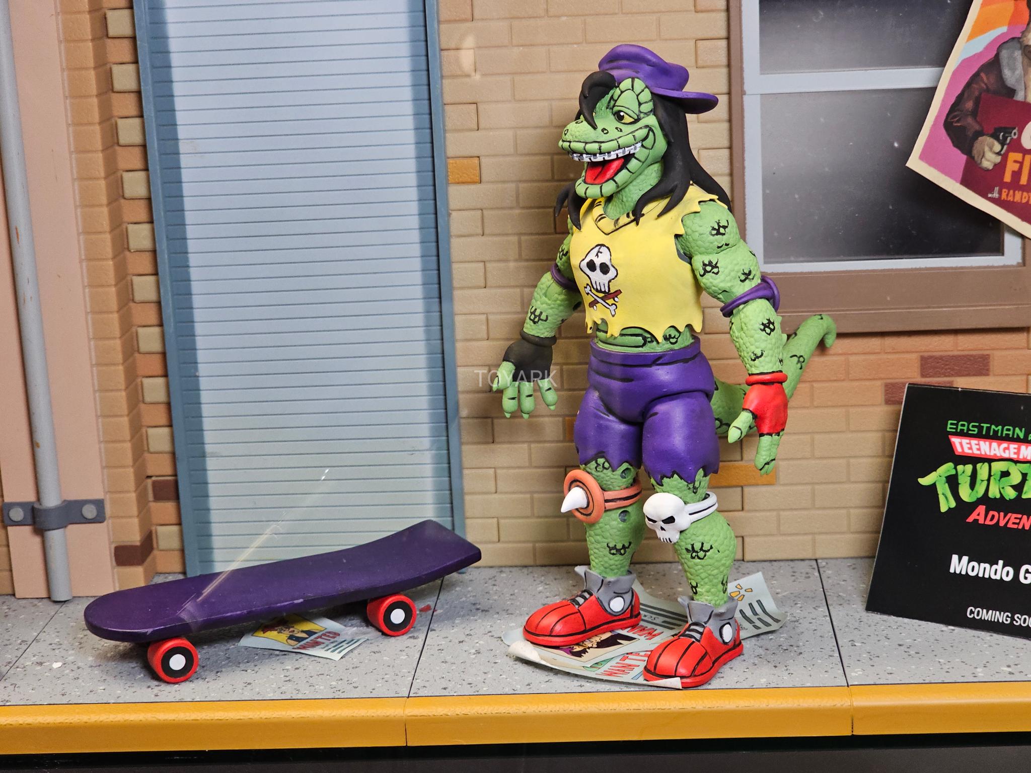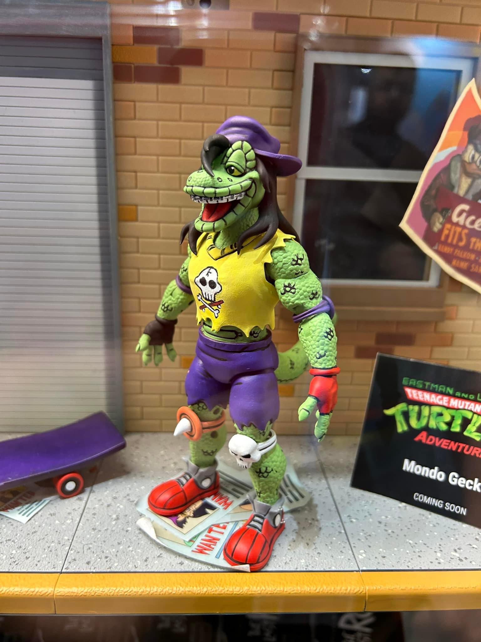 La figurine du Mondo Gecko a été présentée dès le premier jour de la San Diego Comic Con 2023 par NECA. Bien que similaire au Mondo Gecko de la gamme cartoon, cette version a entièrement été sculpté par l’artiste Thomasz Rozejowski qui a partagé le first shot sur les réseaux sociaux début août 2023. Il s’agit probablement de l’une de ses premières créations avec le logiciel Zbrush (source).
