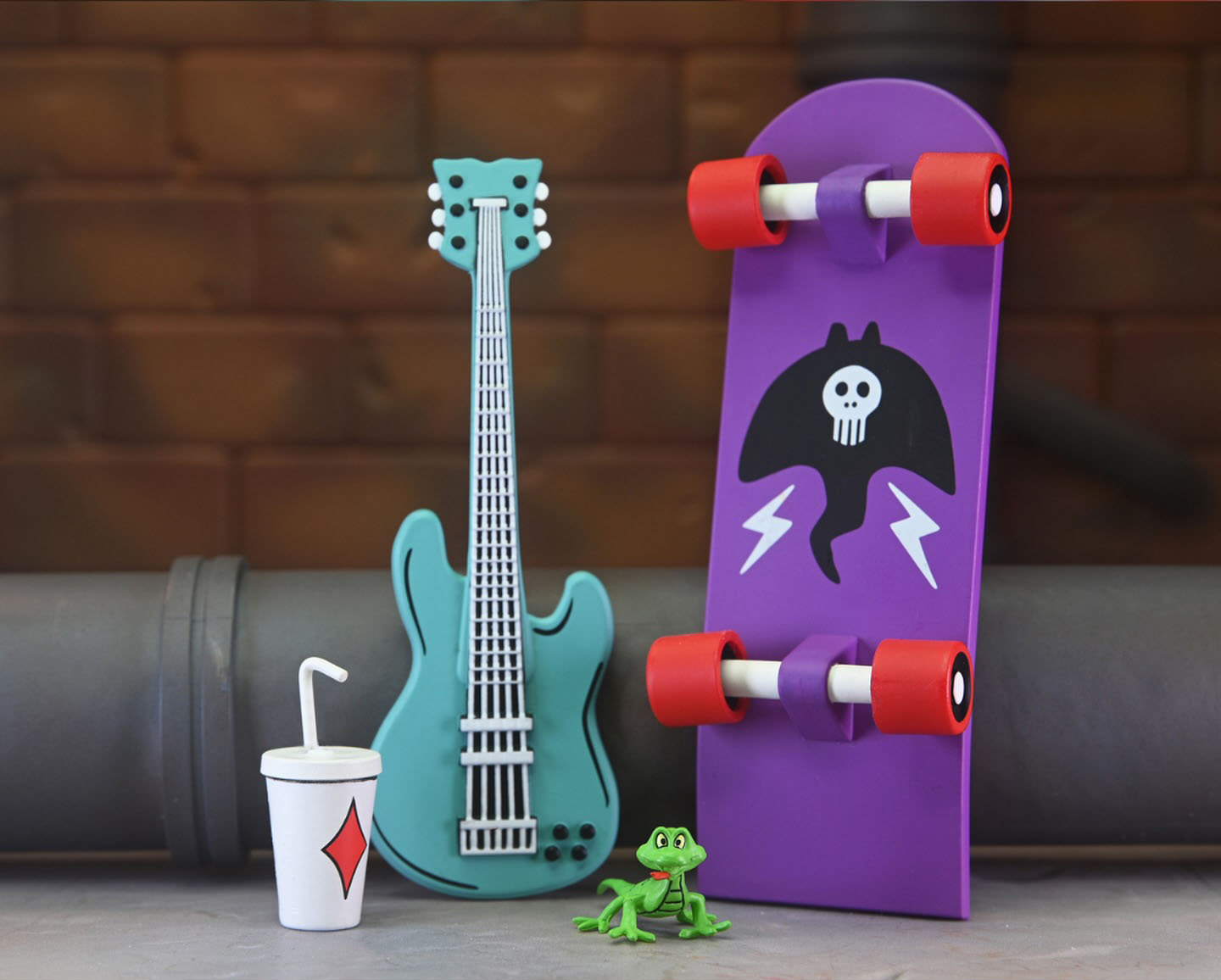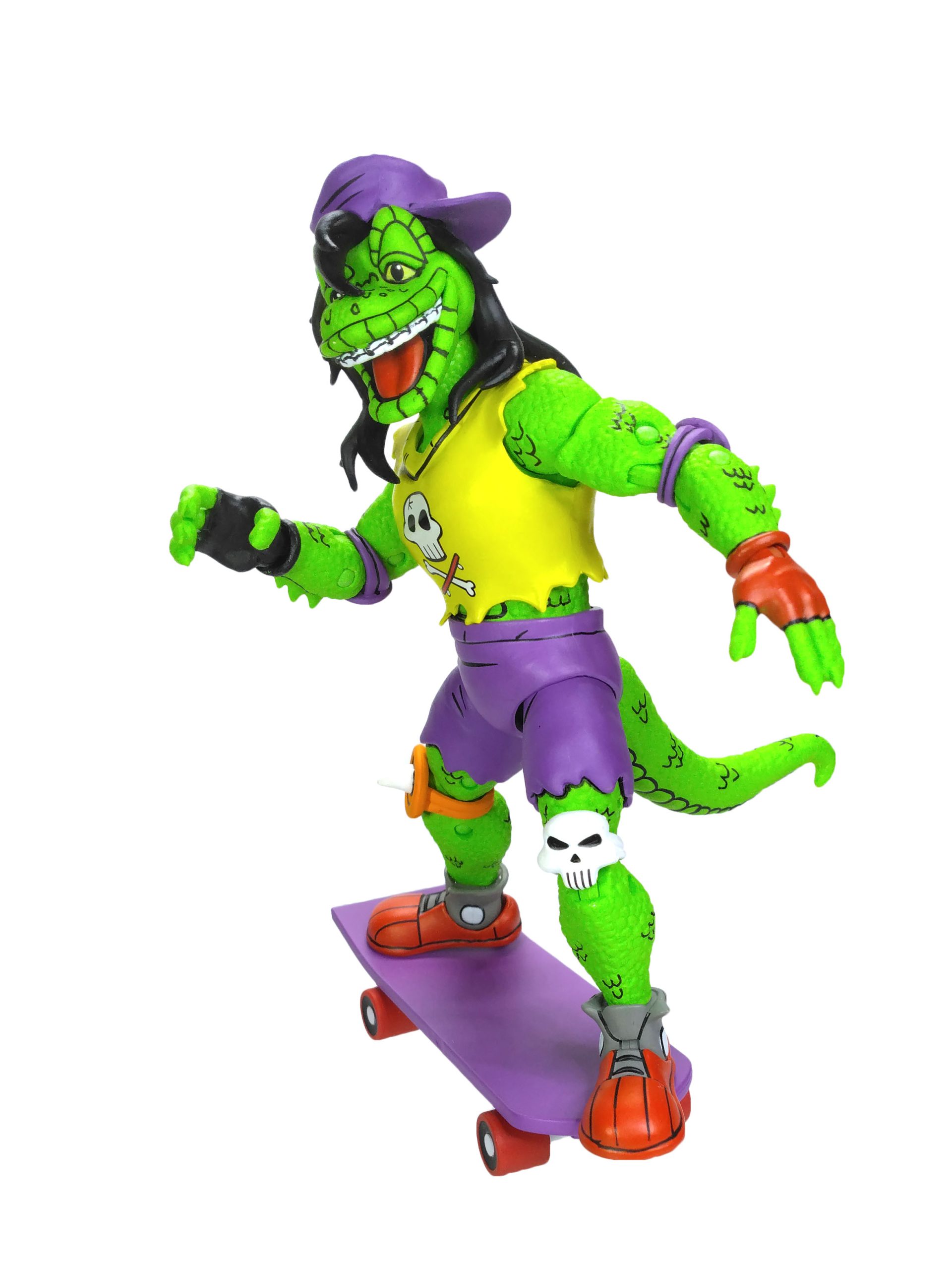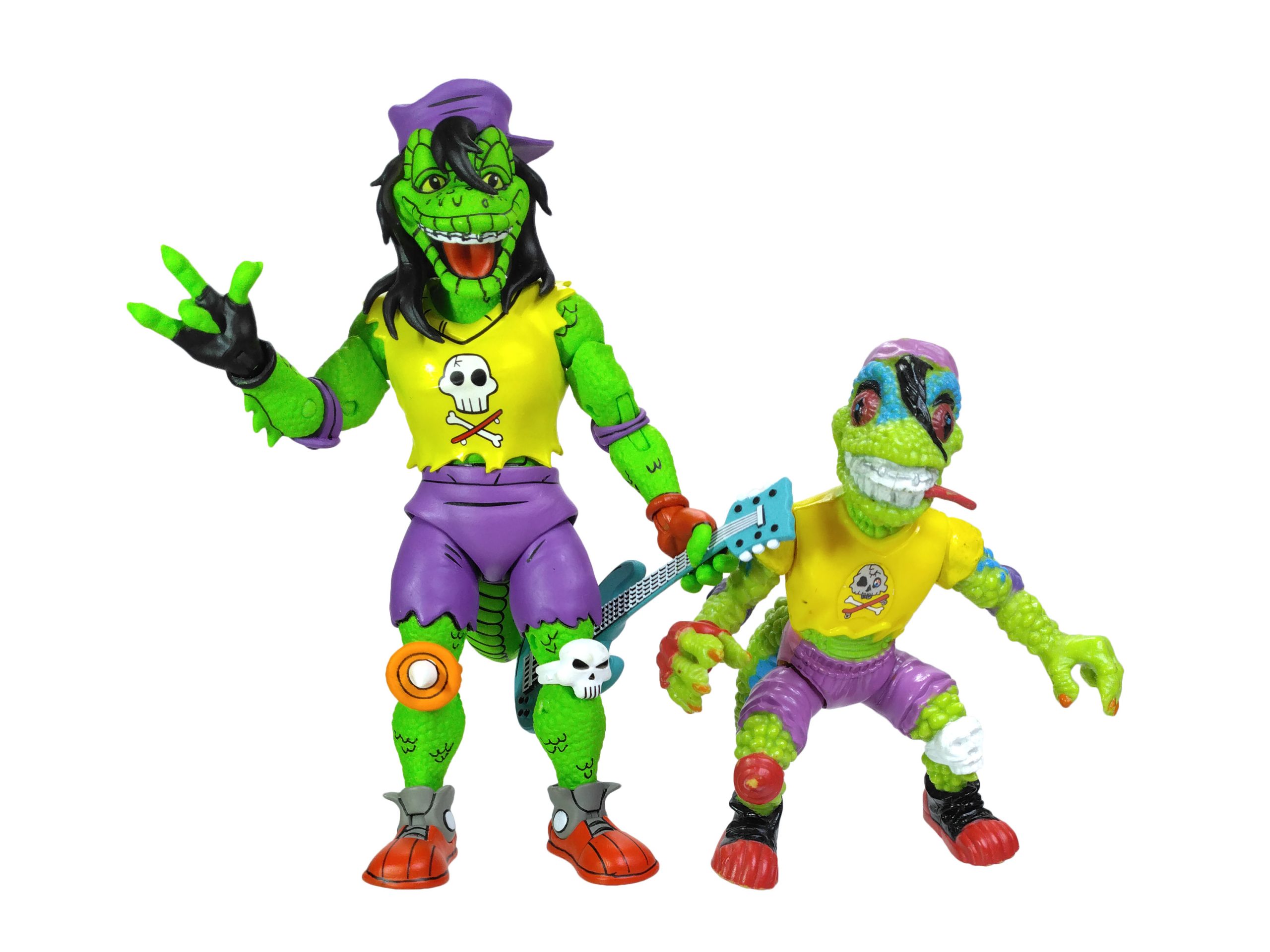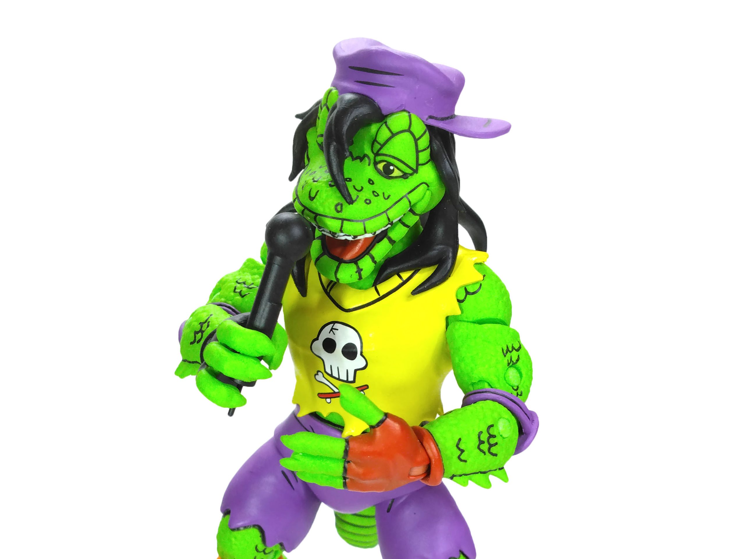 Côté accessoires, notre Gecko possède toute sa panoplie vue dans le TMNT A. #18. La guitare est excellente, les autres accessoires fourmillent de détails. On a même le petit gecko que l’on peut poser sur l’épaule du mutant.
