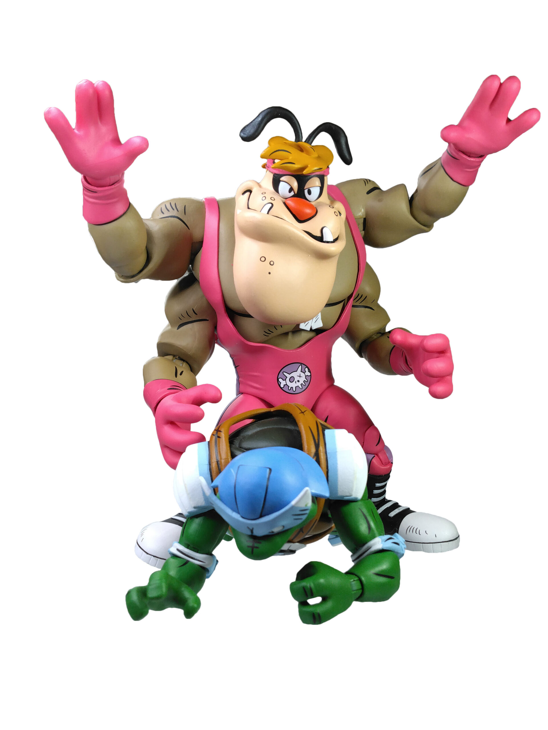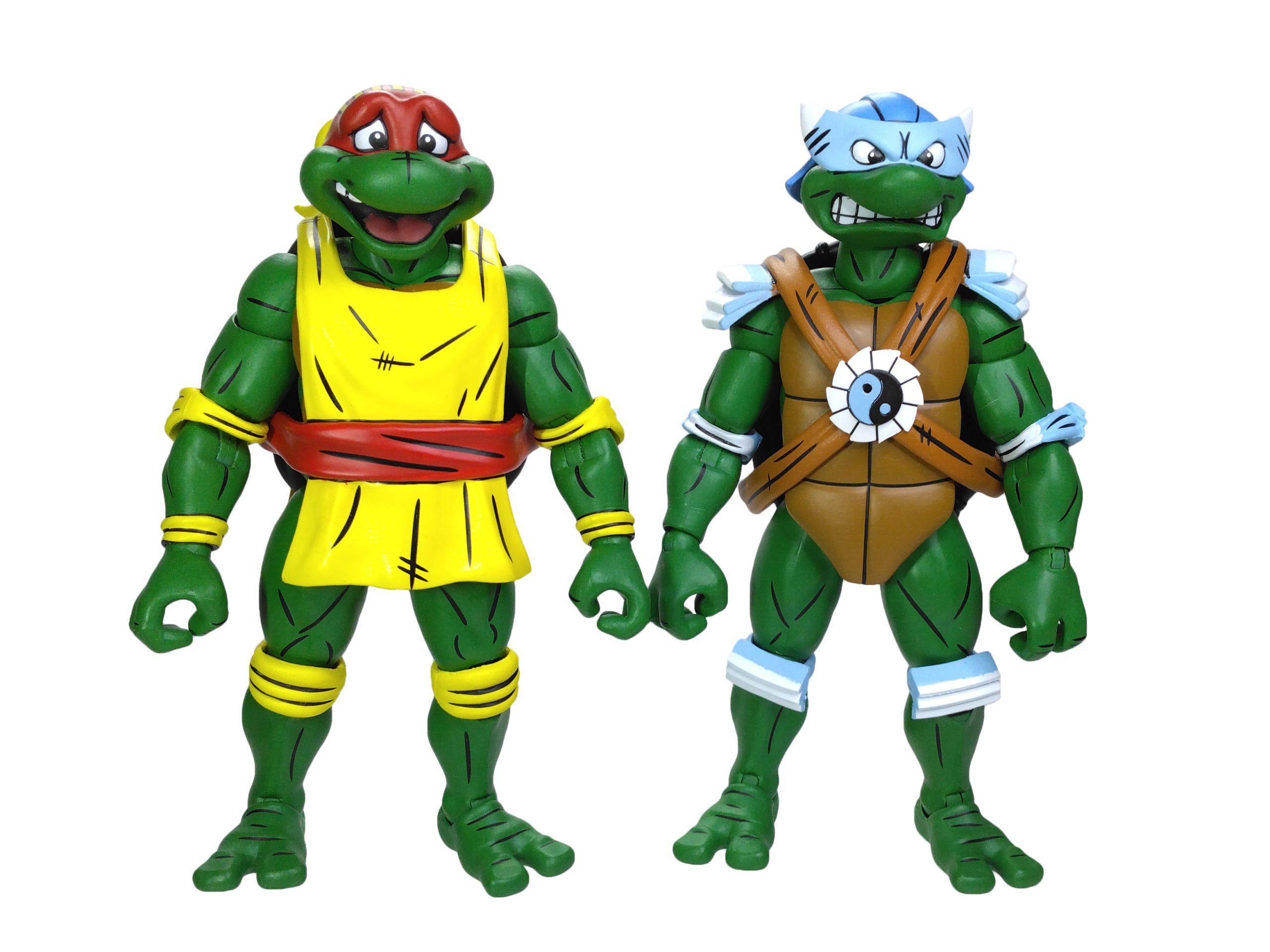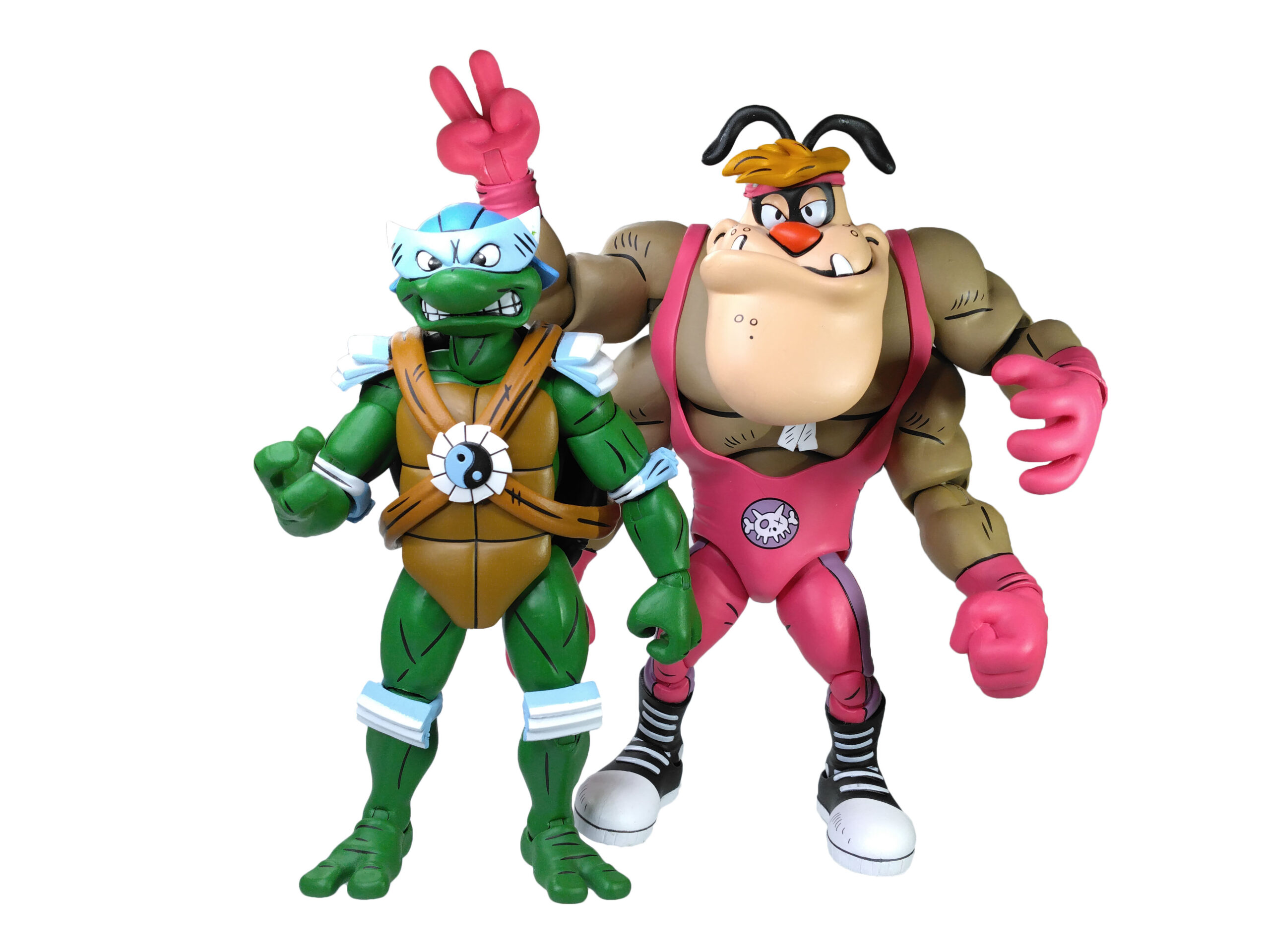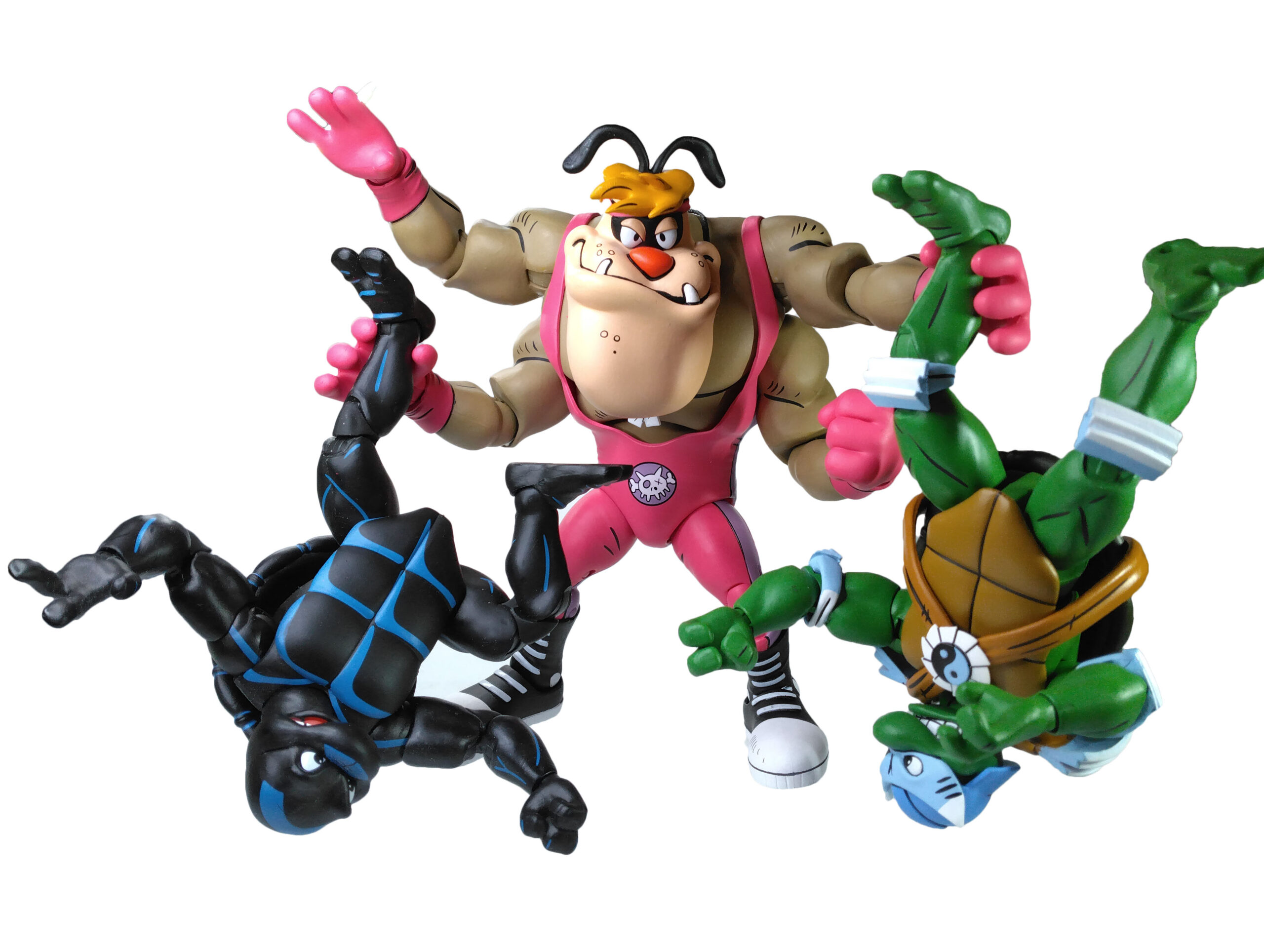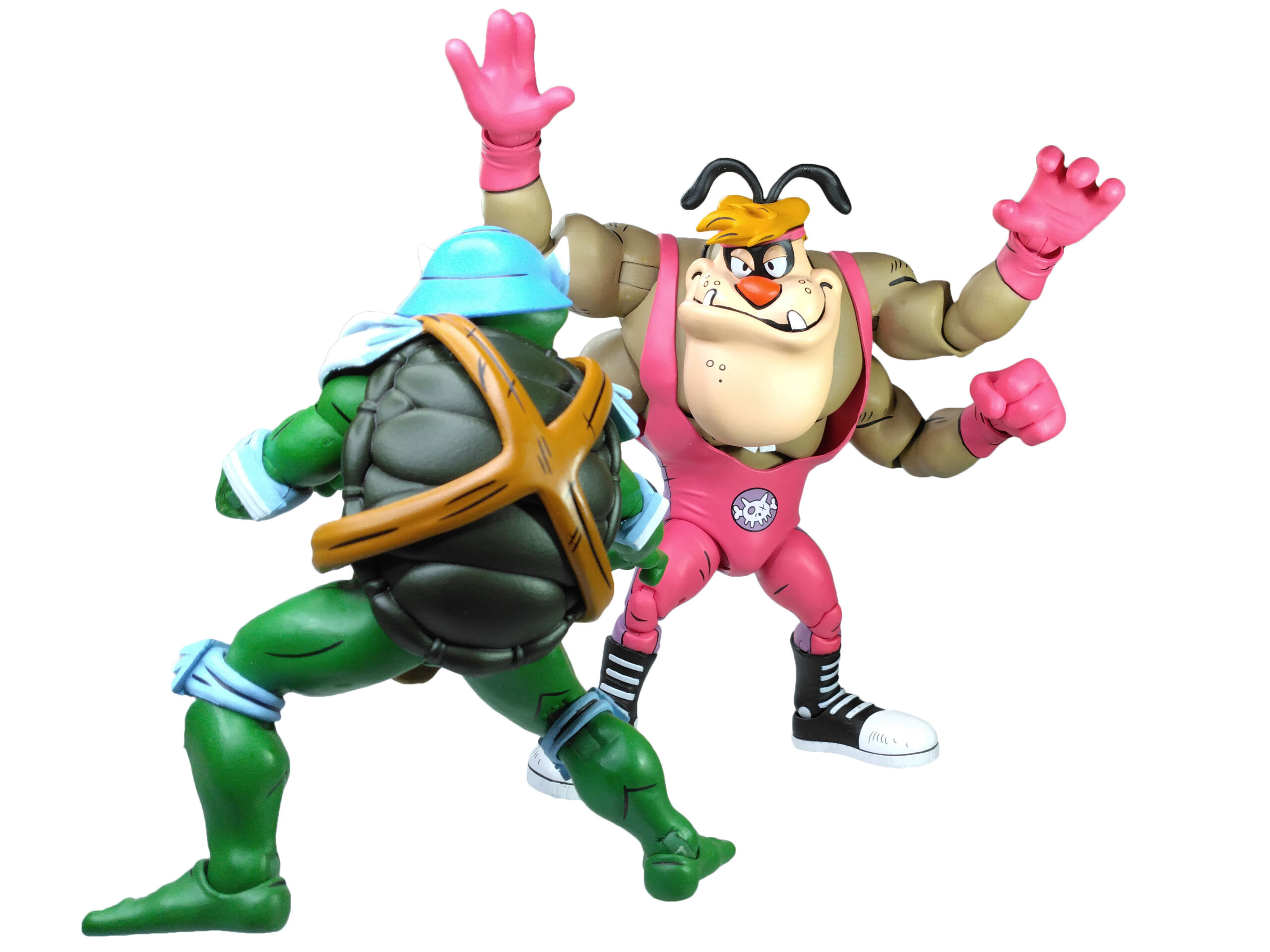 Les tortues en costumes de catch ont été dévoilées par NECA lors de la Comic Con de San Diego de 2023. Les modèles alors présentés étaient relativement avancés. On notait simplement l’absence d’articulations. Toutefois, Trevor Zammit a précisé que ces tortues seraient les premières à proposer des doubles articulations au niveau des coudes et des jambes (à l’instar des gammes The last ronin et de Mirage), afin de les distinguer totalement des modèles du dessin animé de 1987. Ces figurines proposent effectivement une sculpture entièrement nouvelle. En outre, elles possèdent un nouveau système d’articulations dont les vis sont dissimulées au niveau des jambes et des bras, ne laissant plus que les sections des membres apparentes.