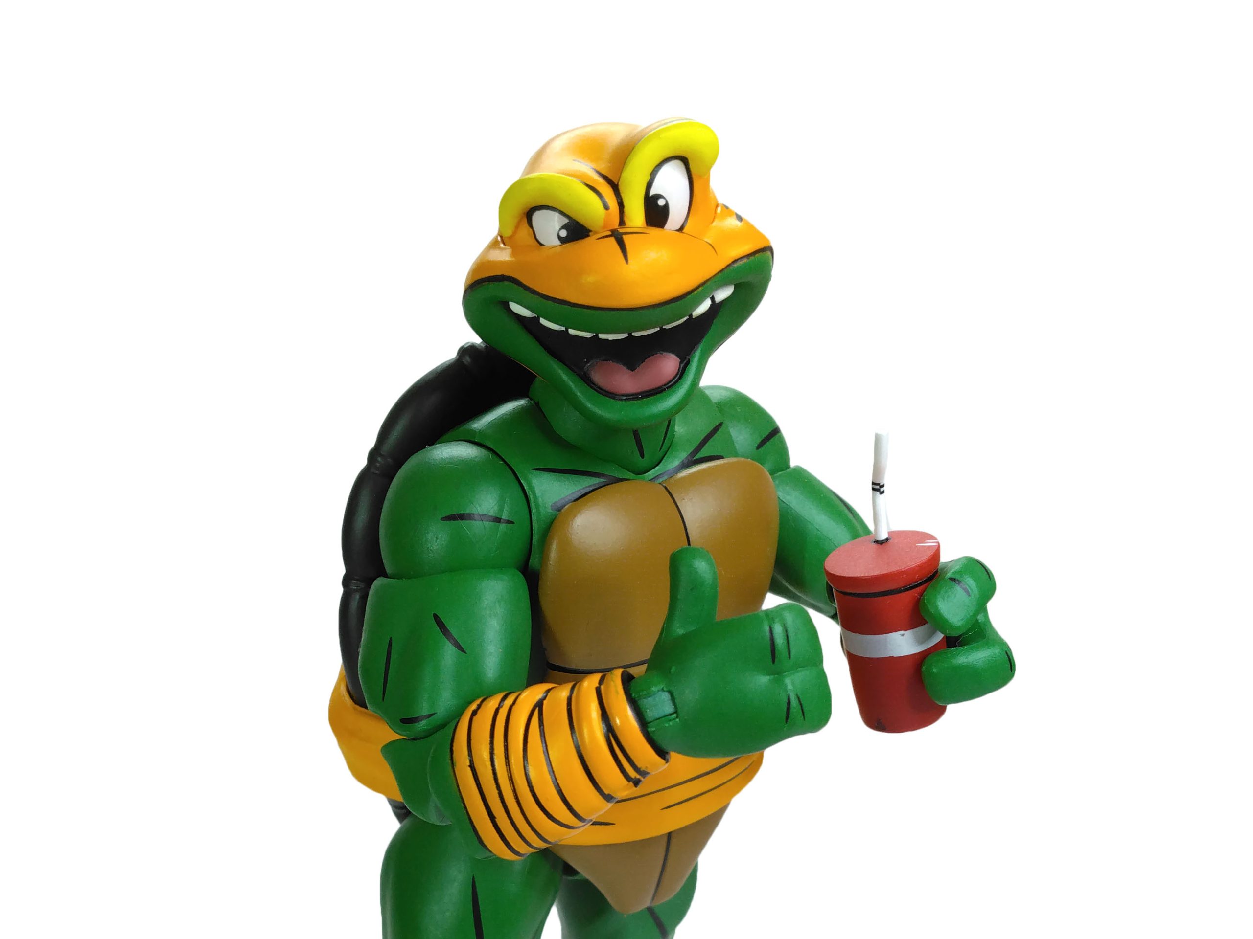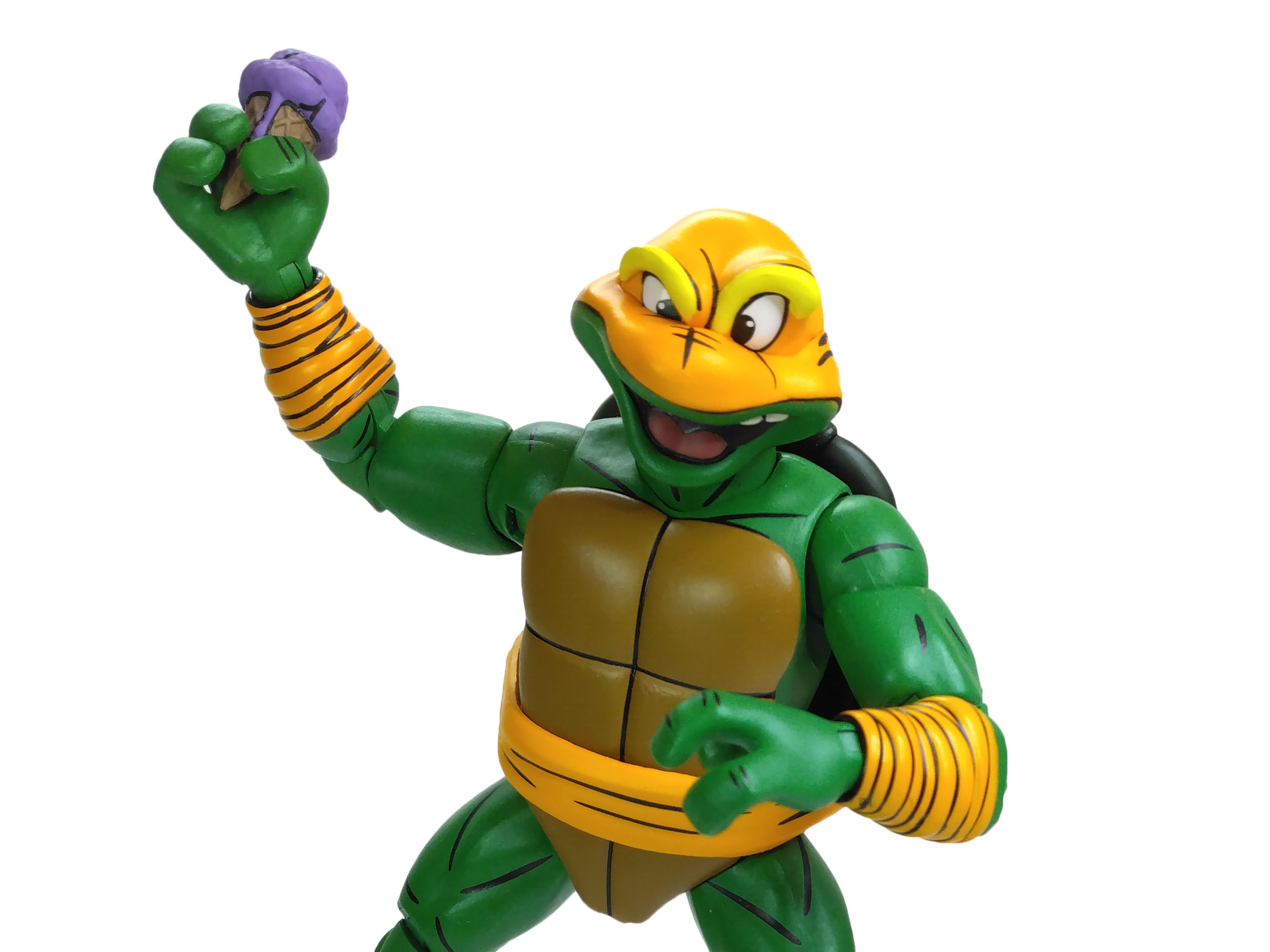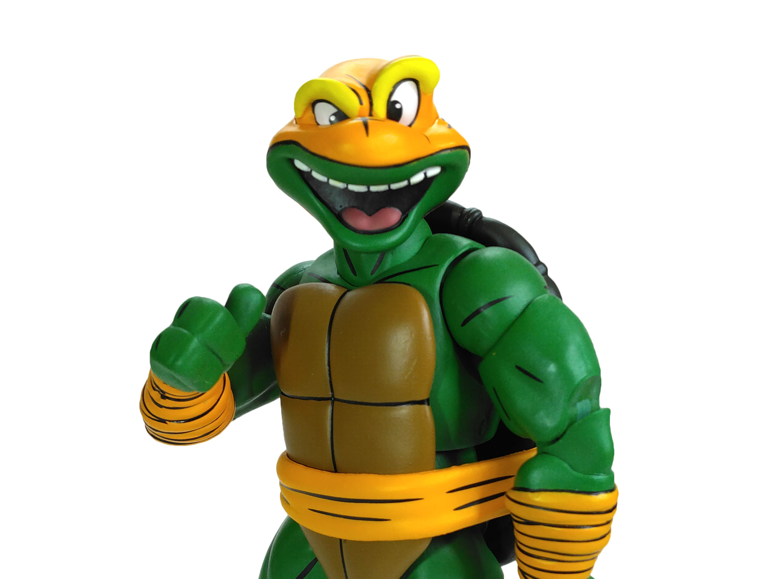 La peinture sur Michelangelo est assez simple mais extrêmement bonne. La tortue possède le même vert de peau que les autres ninjas.