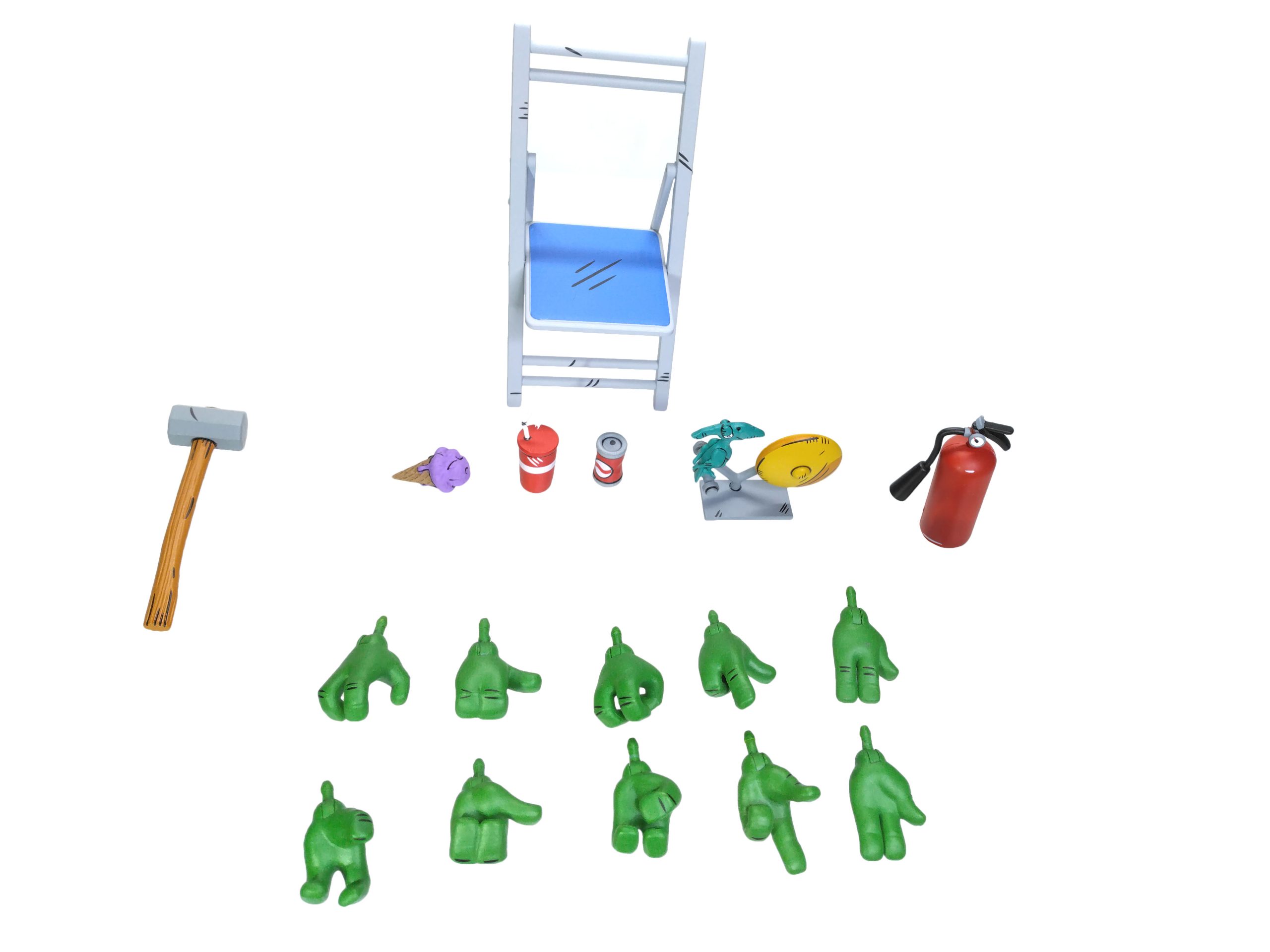 Raphael possède quelques accessoires différents des trois autres tortues. Il s’agit de trois paires de mains interchangeables, spécifiquement réalisées pour lui.