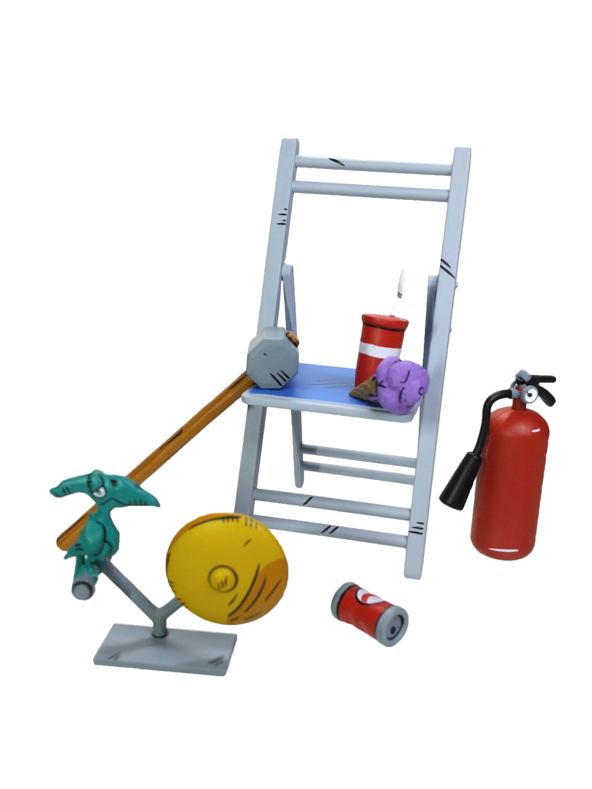 En revanche, deux autres accessoires ne proviennent pas de ce numéro, il s’agit d’une lourde masse et d’une chaise pliante. J’adore cet accessoire. On peut réellement la déplier et poser une figurine dessus ! Ou la fracasser sur la tête d’un adversaire. Elle est géniale !