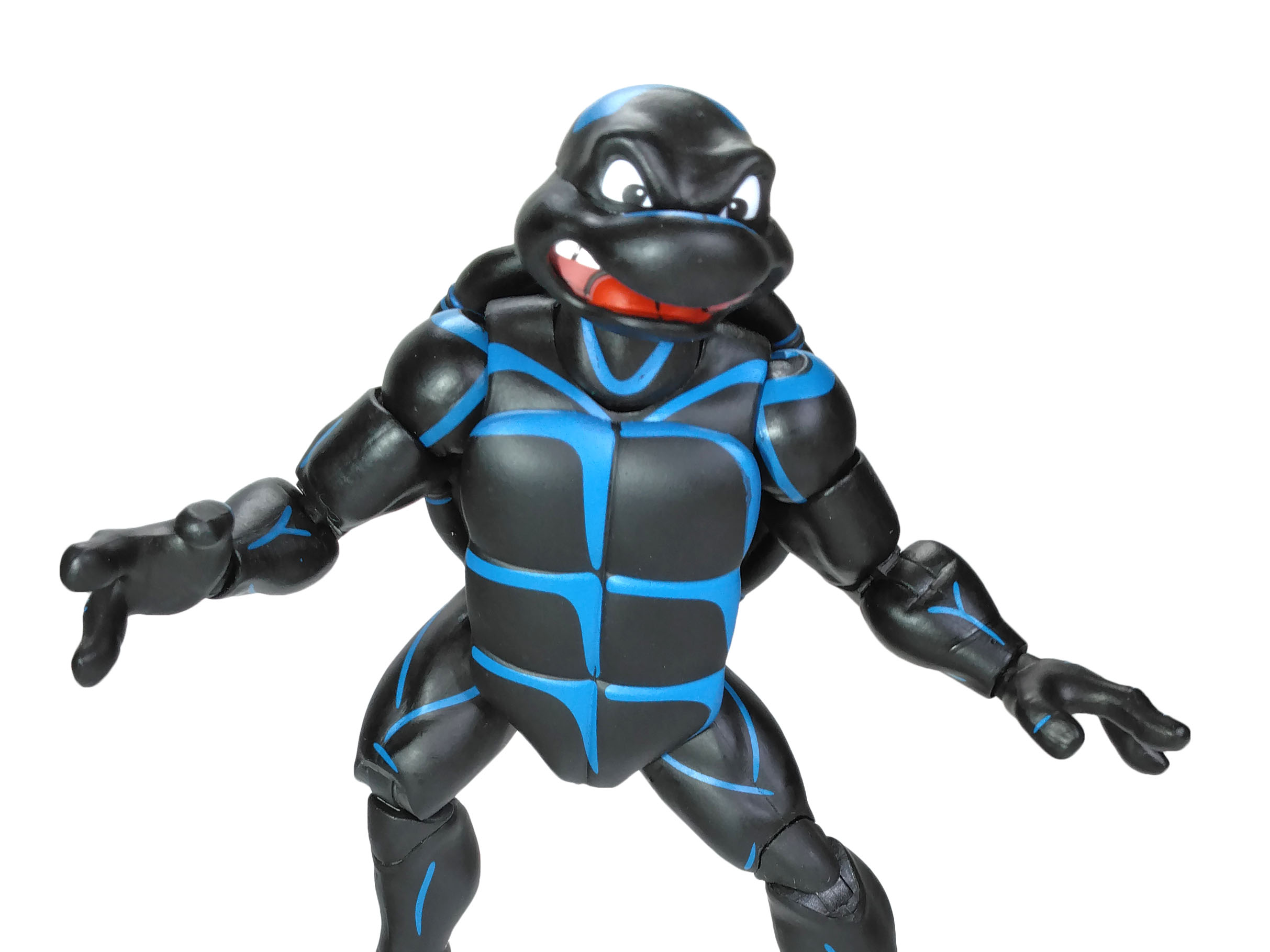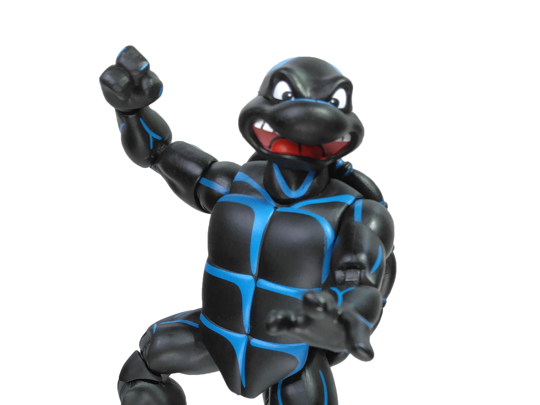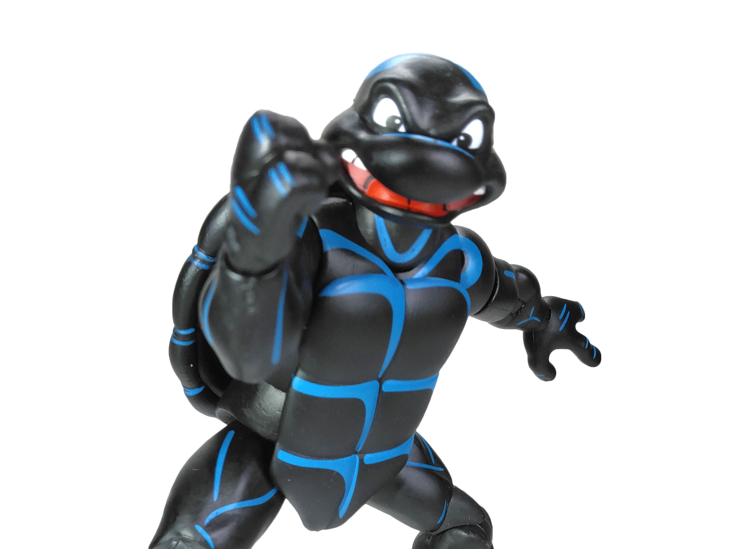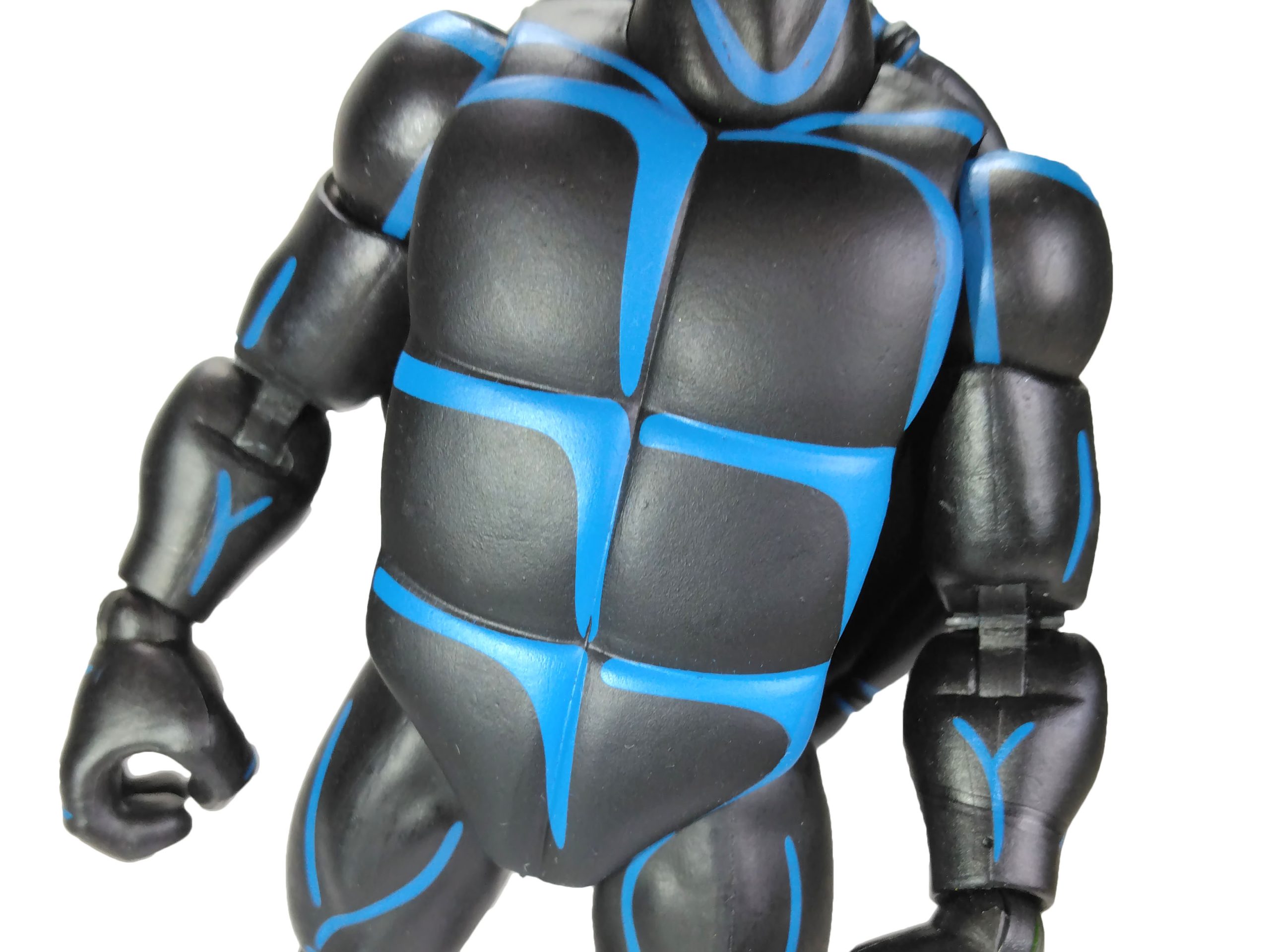 La peinture de Raphael est extrêmement simple. Mais ô combien efficace et bien réalisée. Notre Teenage Symbiote Ninja Turtle possède une combinaison entièrement noire avec des reliefs bleutés. Ceux-ci sont très bien apposés, mettant largement en avant les arrêtes exposées à la lumière. Le rendu est excellent.
