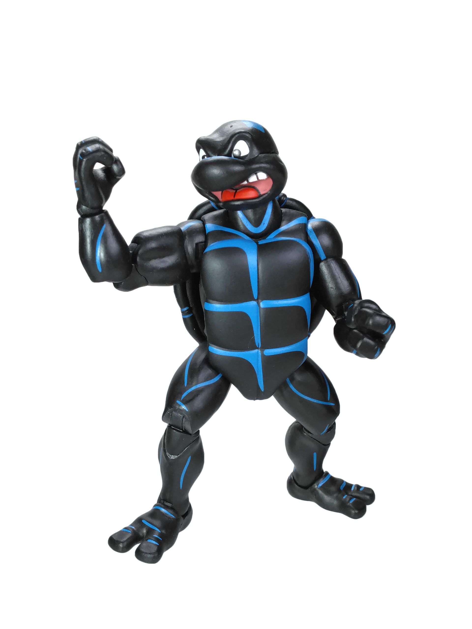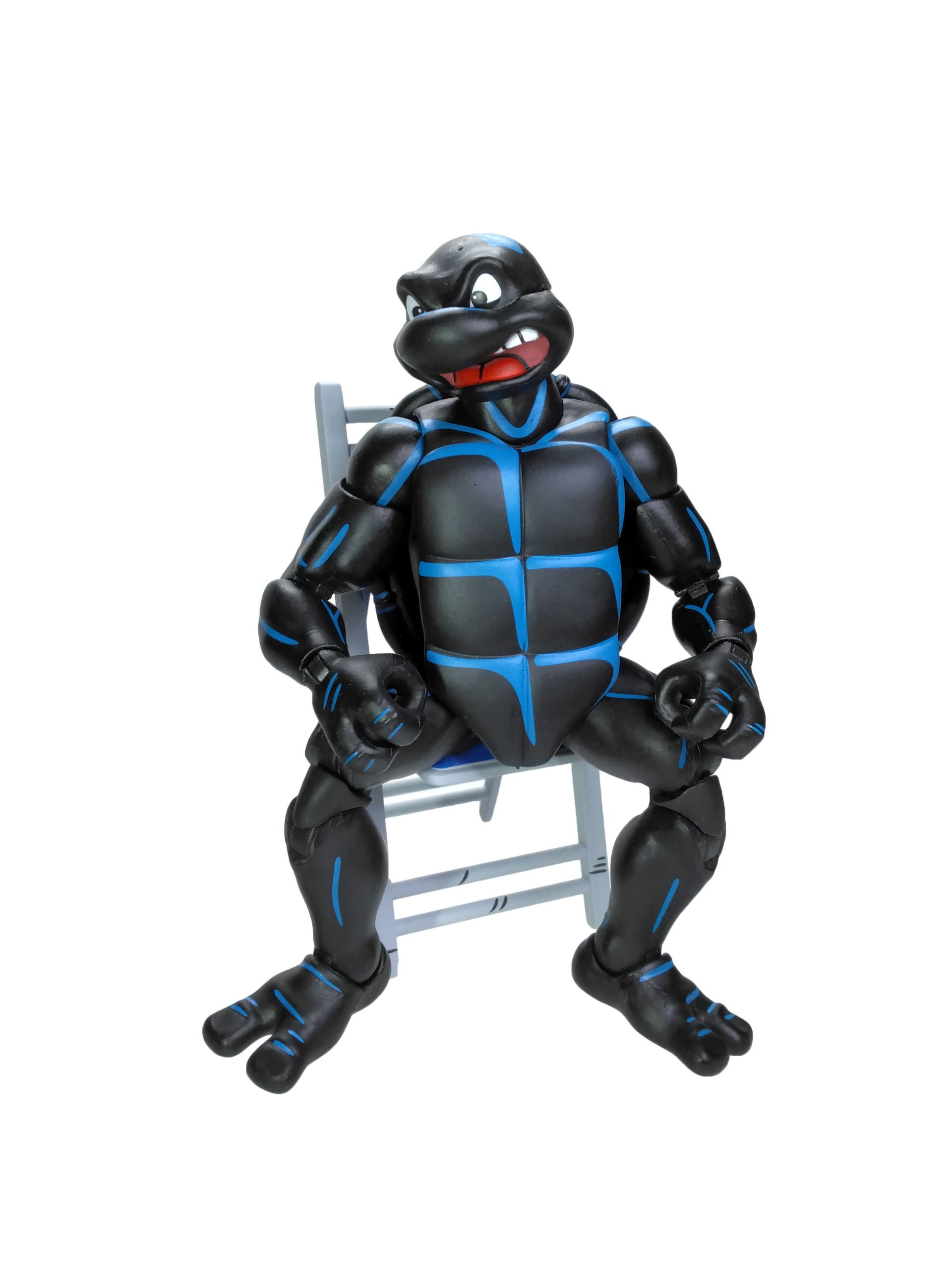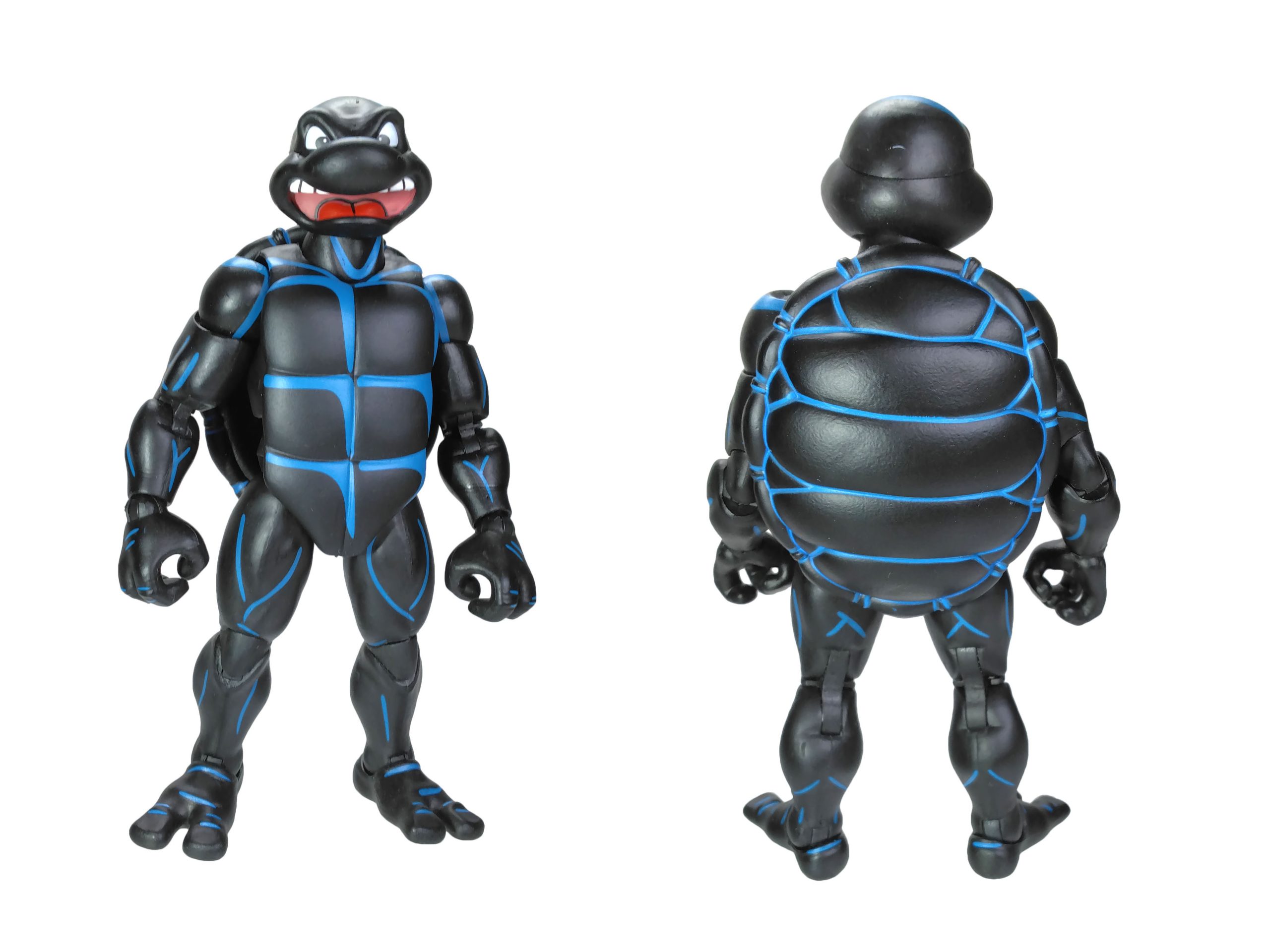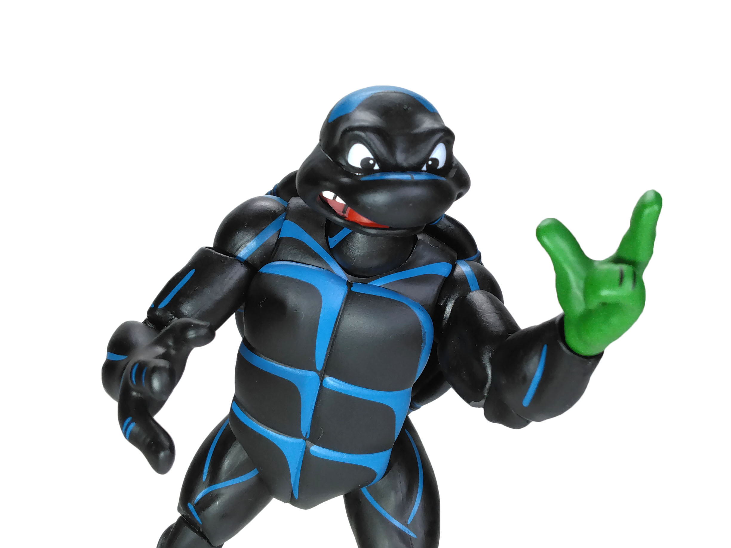 La peinture de Raphael est extrêmement simple. Mais ô combien efficace et bien réalisée. Notre Teenage Symbiote Ninja Turtle possède une combinaison entièrement noire avec des reliefs bleutés. Ceux-ci sont très bien apposés, mettant largement en avant les arrêtes exposées à la lumière. Le rendu est excellent.