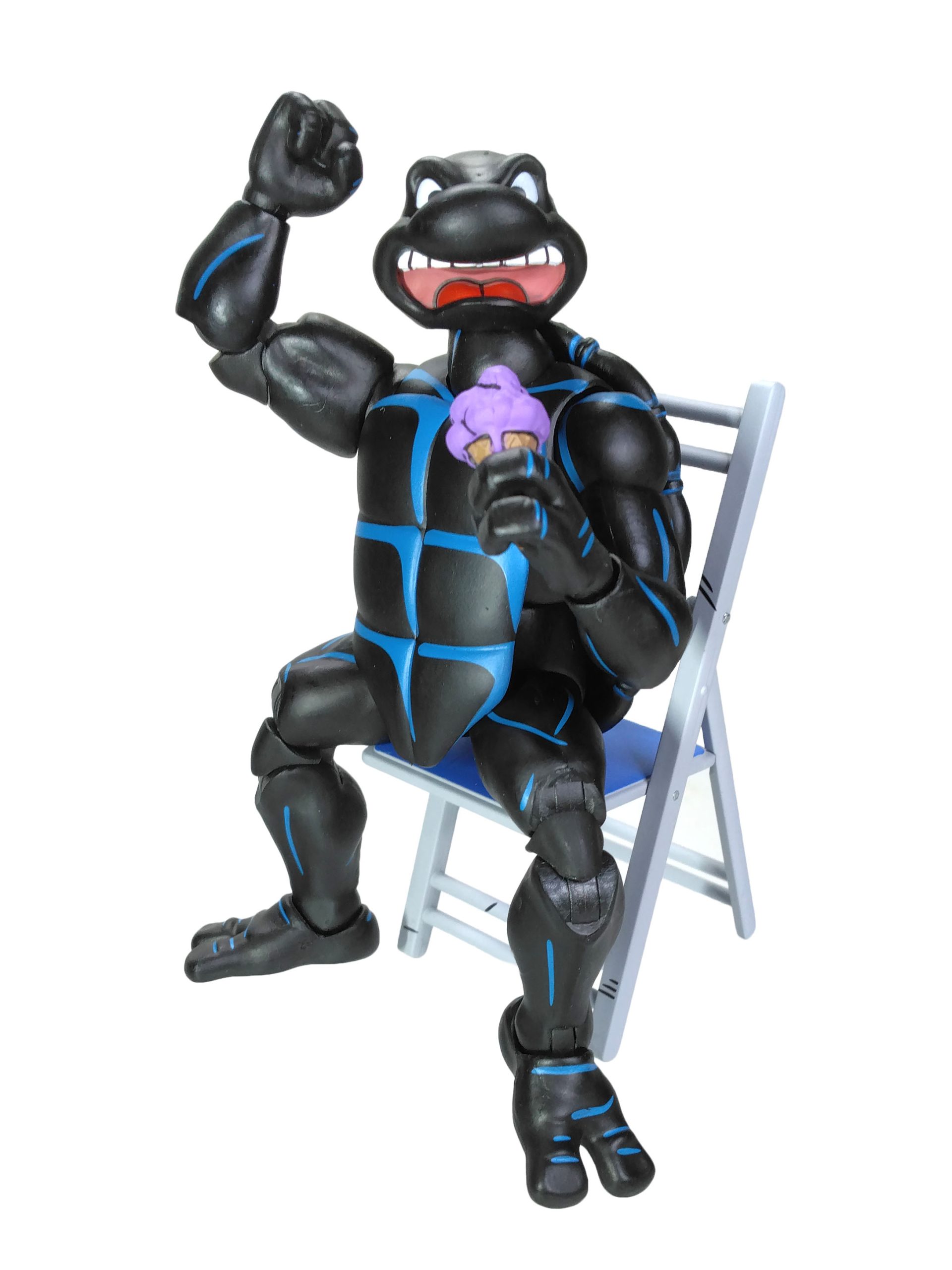 La tortue est entièrement articulée, notamment avec une double articulation au niveau des genoux et des coudes. Le torse de la tortue possède une rotule, permettant de la rendre très dynamique.