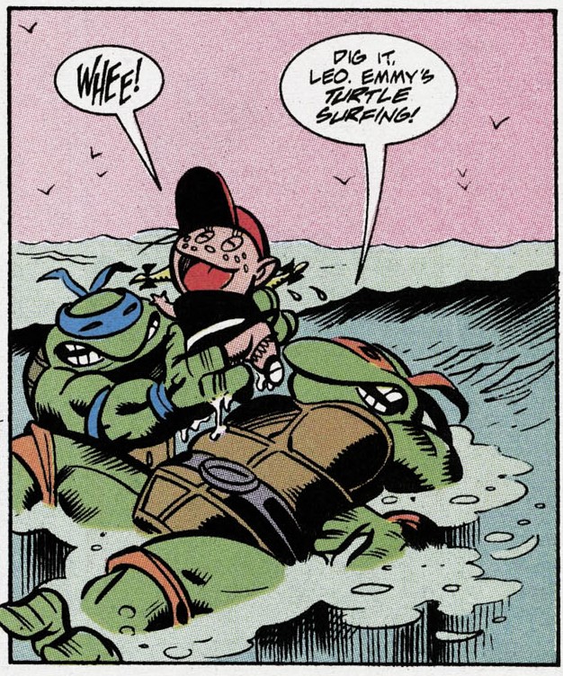 De plus, cette aventure montre les tortues essayer d’entrer en contact avec Umihaha par télépathie, quelque chose qu’elles réalisaient apparemment pour la première fois dans le TMNT A. #17.