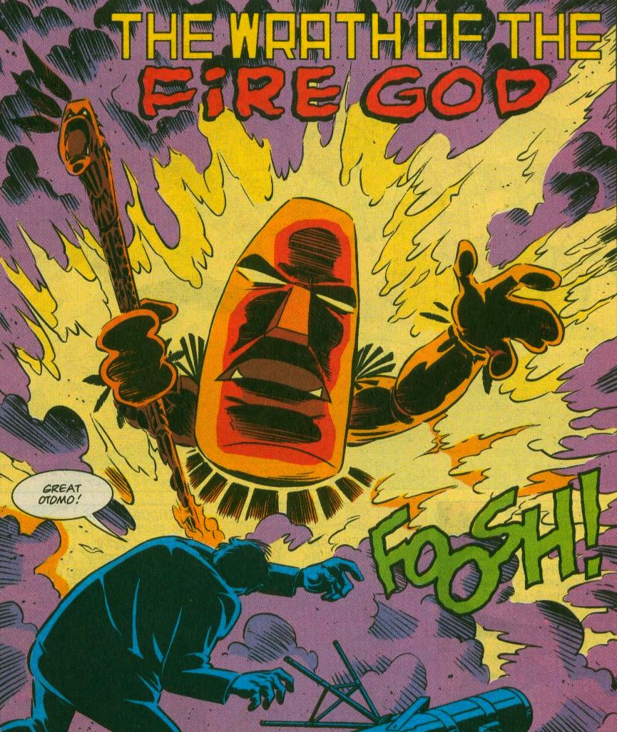 Lorsque la réunion prenait fin et que le groupe se séparait, l’homme voulait poursuivre ses observations du ciel. Il était obsédé à l’idée de retrouver ce qu’il avait vu filer sous ses yeux. Il ne tardait pas à apercevoir de nouveau cette traînée de feu. Il ne s’était pas trompé ! Pire encore, elle se dirigeait vers lui et s’écrasait sur le sol. Une forme humanoïde portant un masque et entourée de feu se dressait face à l’homme. Aal Smith pensait qu’il s’agissait du Grand Otomo, le Dieu du feu.