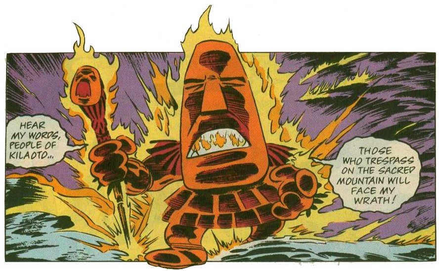 Non loin de là, Aal Smith racontait à ses partenaires ce qu’il avait vu la nuit précédente. Une fois encore, personne ne le croyait. Le dieu Otomo lui aurait demandé de convaincre son équipe de s’opposer au projet de super télescope, qui devait être construit au sommet du volcan de l’île. S’ils le faisaient, ils le regretteraient. Énervé de voir que personne ne l’écoutait, il leva les bras au ciel, poussant sa partenaire Lelani Tuaolo sur le bord du chemin, d’où elle tomba. Elle fut sauvée par Donatello, qui ramassait les ordures en contrebas. La femme n’avait pas peur des tortues, comme ses deux partenaires, qui venaient voir si tout allait bien. Smith était confus de cet accident, que les tortues voyaient d’un très mauvais œil. Heureusement, la femme rassurait tout le monde, précisant que ce n’était pas intentionnel, appuyée par Jon Sikahema. Les trois individus faisaient partie d’un conseil élu pour discuter de l’implantation du super télescope. Ils en profitèrent pour inviter les tortues à la présentation du soir-même.