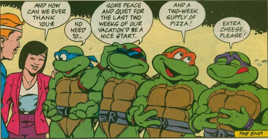 - Dans le TMNT Adventures Special #4, il est déclaré dans le questions-réponses que les trois premiers TMNT A. Special contenaient des aventures à inclure entre les TMNT A. #4 et TMNT A. #5. Cependant, comme nous l’avons vu dans les numéros précédents, cela n’est pas possible, en raison de détails qui contredisent cette chronologie.