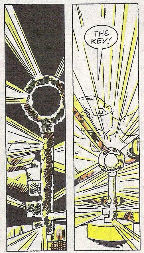 Pendant que ses frères s’occupaient de l’armée de plastique et de tissu, Michaelangelo s’empressait de monter dans la tour et de mettre la main sur la clé. La saisissant, il partit ouvrir la cage d’April, qui était saine et sauve. Mistia n’avait pas dit son dernier mot, elle ne les laisserait pas sortir de là vivant. Raphael ne comptait pas échouer cette fois, et lança de nouveau un saï, cette fois dans son sceptre, qui se brisa. Vaincue, la sorcière s’évaporait totalement, poussant des cris.