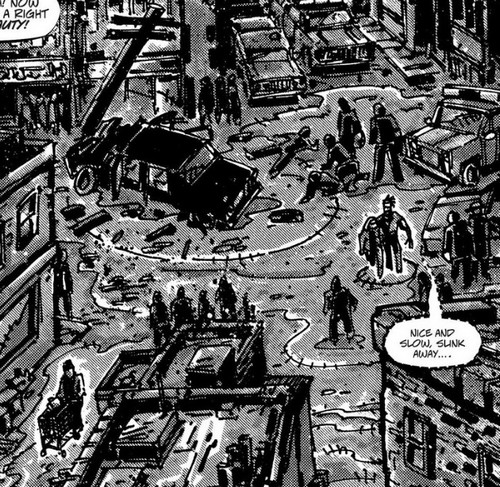 Ils ignoraient qu’à l’intérieur, se trouvaient plusieurs membres des Savates. Casey était persuadé d’avoir causé l’accident en lâchant sa batte dans le combat avec Raphael. Elle aurait heurté le parebrise du véhicule. Ils ne pouvaient rester là. Après avoir évacué les blessés ils filaient discrètement. Deux détectives se trouvaient dans les parages et arrivaient au plus vite. Il s’agissait de deux vieilles connaissances, Richard Miller et Frank Corbin. Des flics corrompus de la pire espèce…