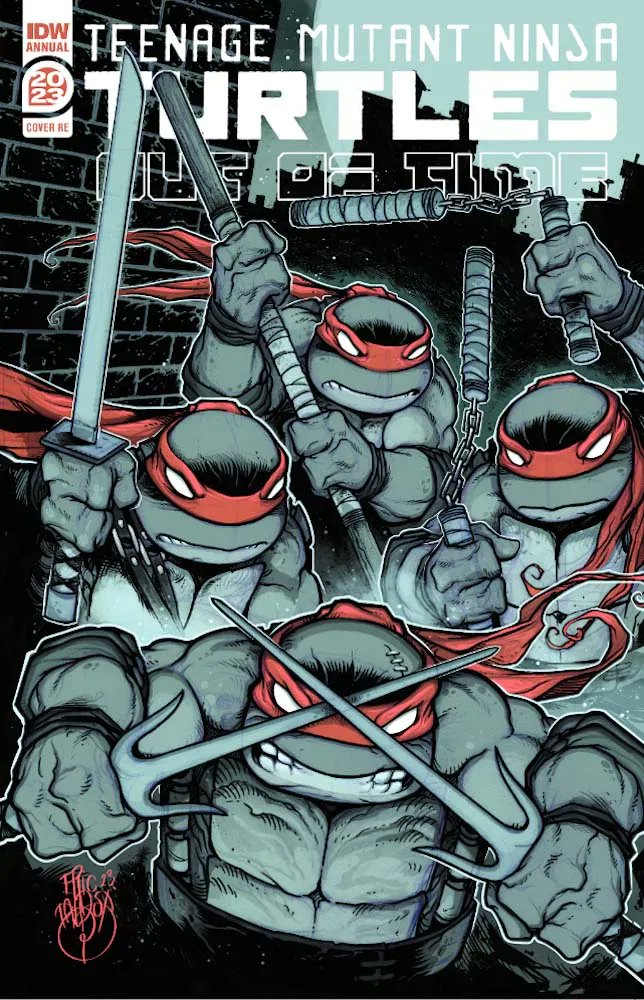 Le visiteur du futur voulait simplement s’entretenir avec Donatello, à part des autres. Ses frères s’y opposaient. Ils ne savaient rien de lui. Hors de question de laisser l’un d’eux s’isoler avec un inconnu. Michelangelo tendait à la vieille tortue son skateboard et lui demandait de leur prouver qu’il s’agissait bien de l’un d’eux en leur racontant son histoire. Regardant la vieille planche rafistolée, le Raphael du futur se remémorait un instant doux de leur vie. Loin des batailles et des larmes. Il remontait à l’époque où la famille venait de se retrouver (TMNT #4). Michelangelo rêvait d’avoir un skateboard et regardait des humains en faire depuis une bouche d’égout. L’un d’eux faisait une pirouette et à la réception, cassait son outil. Devenu inutile, il l’abandonnait. Attendant la nuit, Raphael sortit le récupérer et le donna à Donatello pour qu’il le répare.