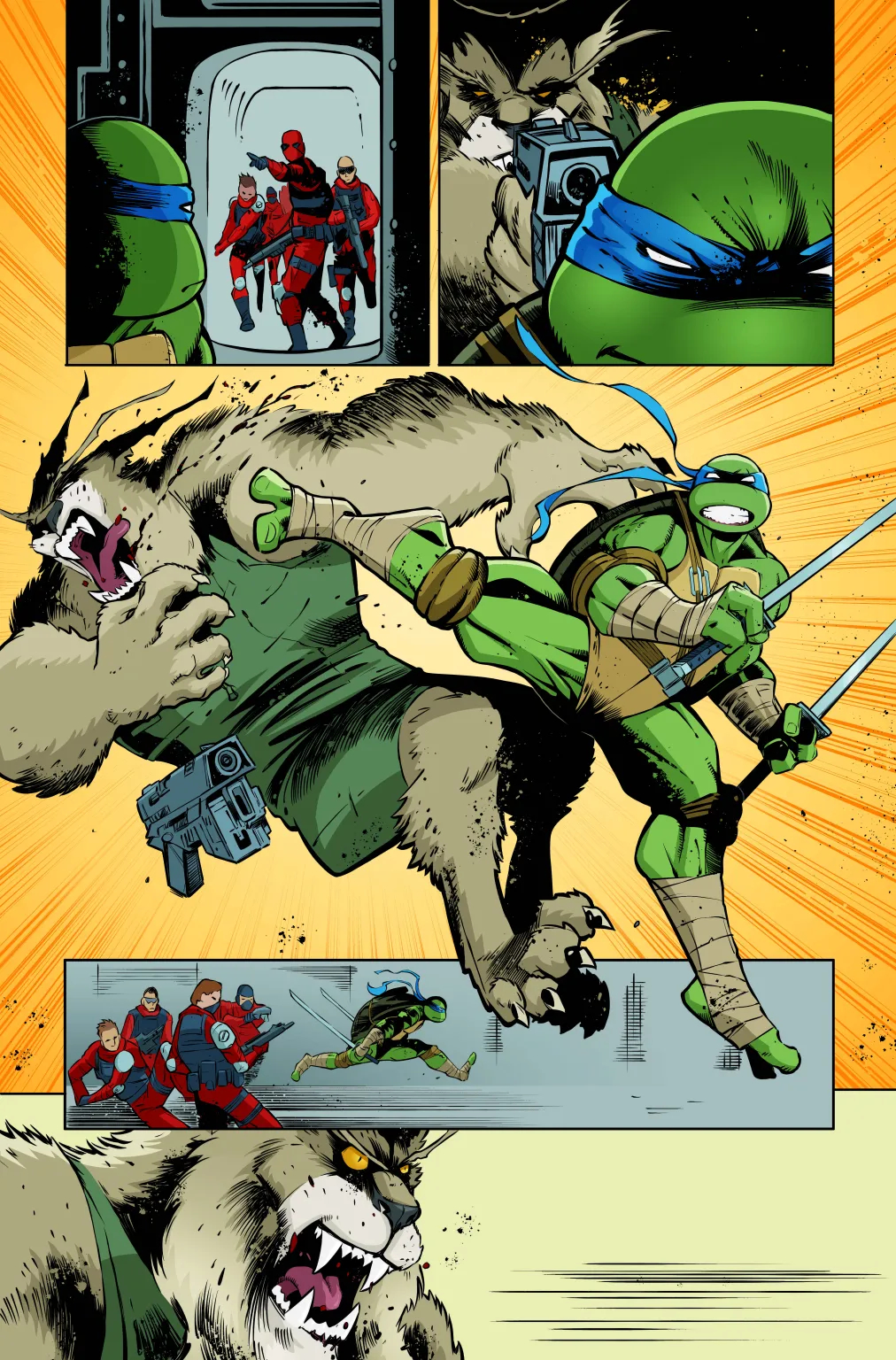 Leonardo n’était pas certain que ses frères apprécieraient le récit qu’il s’apprêtait à leur délivrer tant il était moribond. Une année dans le passé, Leonardo s’était lancé à la poursuite d’un groupe de militants anti-mutant qui avait capturé un puissant chef d’entreprise d’armement militaire du nom de Travis Fleck. Ses trois frères avaient été sauvagement assassinés dans leur appartement. Plusieurs autres mutants avaient été massacrés par ce même groupe par la suite. La tortue s’était rendue sur un bateau dans les eaux sud-américaines pour retrouver le prisonnier et le ramener chez lui.