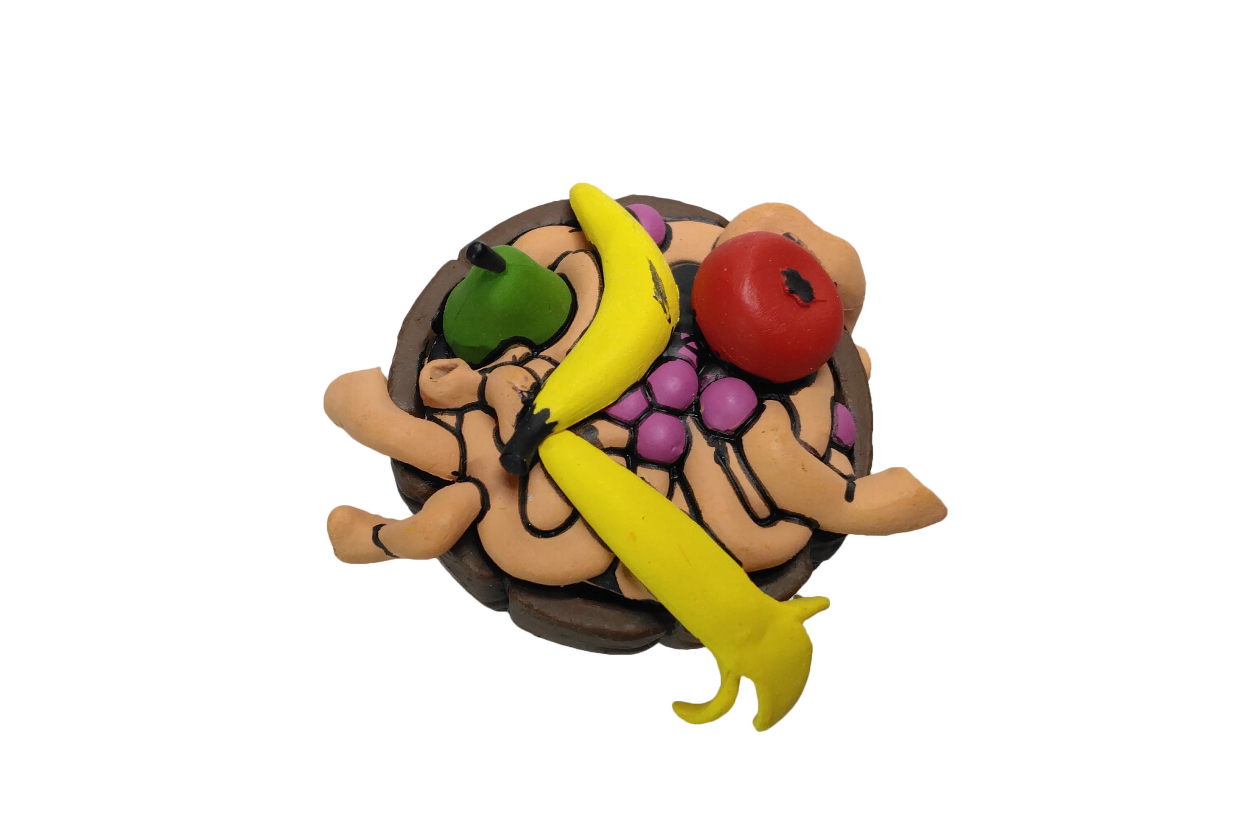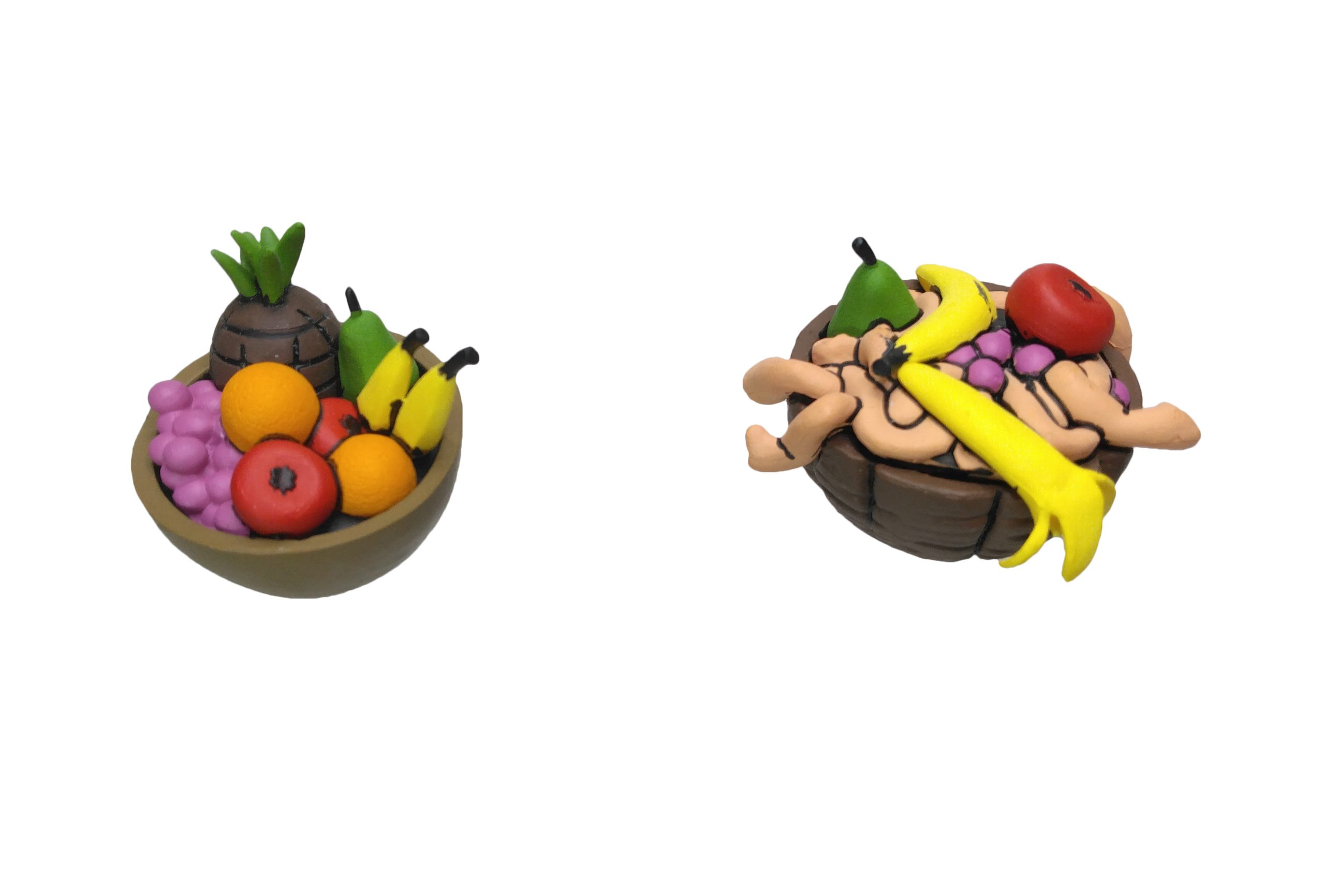 Le bol de tripes de singe renvoie au TMNT A. #15. Il s’agissait d’une offrande du peuple du Tepuí. Nous y retrouvons les tripes, mais aussi quelques fruits. En parlant de fruit, nous avons également deux bananes, une intacte et une prête à se faire dévorer. Nous avons aussi une boîte de conserve.