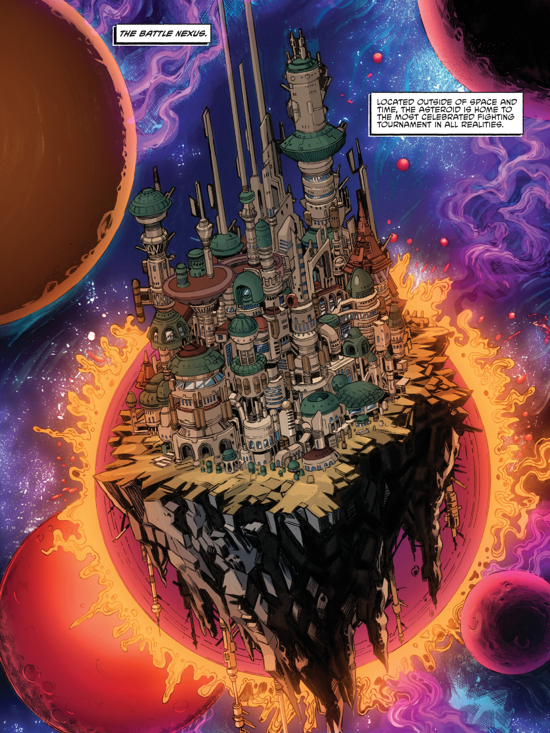 Le Battle Nexus se situait hors du temps et de l’espace. Un astéroïde qui accueillait un immense palais où se prêtaient à la bataille les plus grands guerriers des univers. De vulgaires combats de gladiateurs sanglants, il est devenu un évènement très apprécié dans le multivers. Les guerriers étaient choisis par un Conseil dimensionnel dirigé par le seigneur Simultaneous. Mais cette tradition noble était sur le point de changer…
