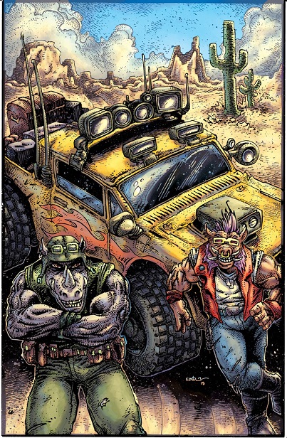 À travers les pleines désertiques du Mexique, la voiture de Bebop et Rocksteady filait, laissant derrière elle une large trainée de poussière. Les deux mutants prenaient la direction de New York, bien décidés de rentrer à la maison. En chemin, le phacochère eut une idée. Les tortues étaient appréciées, elles avaient plein d’amis. Ils devaient devenir bons. Rocksteady était récalcitrant avant de s’imaginer devenir un héros.