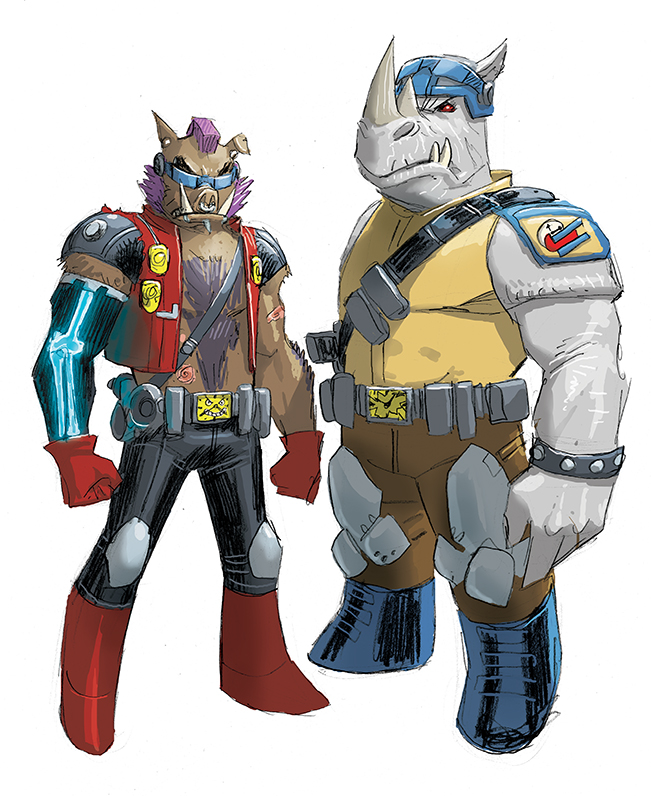 - Depuis la sixième mini-série d’IDW, Bebop & Rocksteady destroy everything, IDW Publishing a pris l’habitude de sortir des séries de cinq numéros lors des mois possédant cinq mercredis. Cette nouvelle mini-série du mois d’août avait été annoncée le 25 mars 2018 au cours du WonderCon. À cette occasion, c’était la cover de Ben Bates pour le premier numéro qui avait permis d’illustrer ce nouvel arc loufoque des deux brutes.