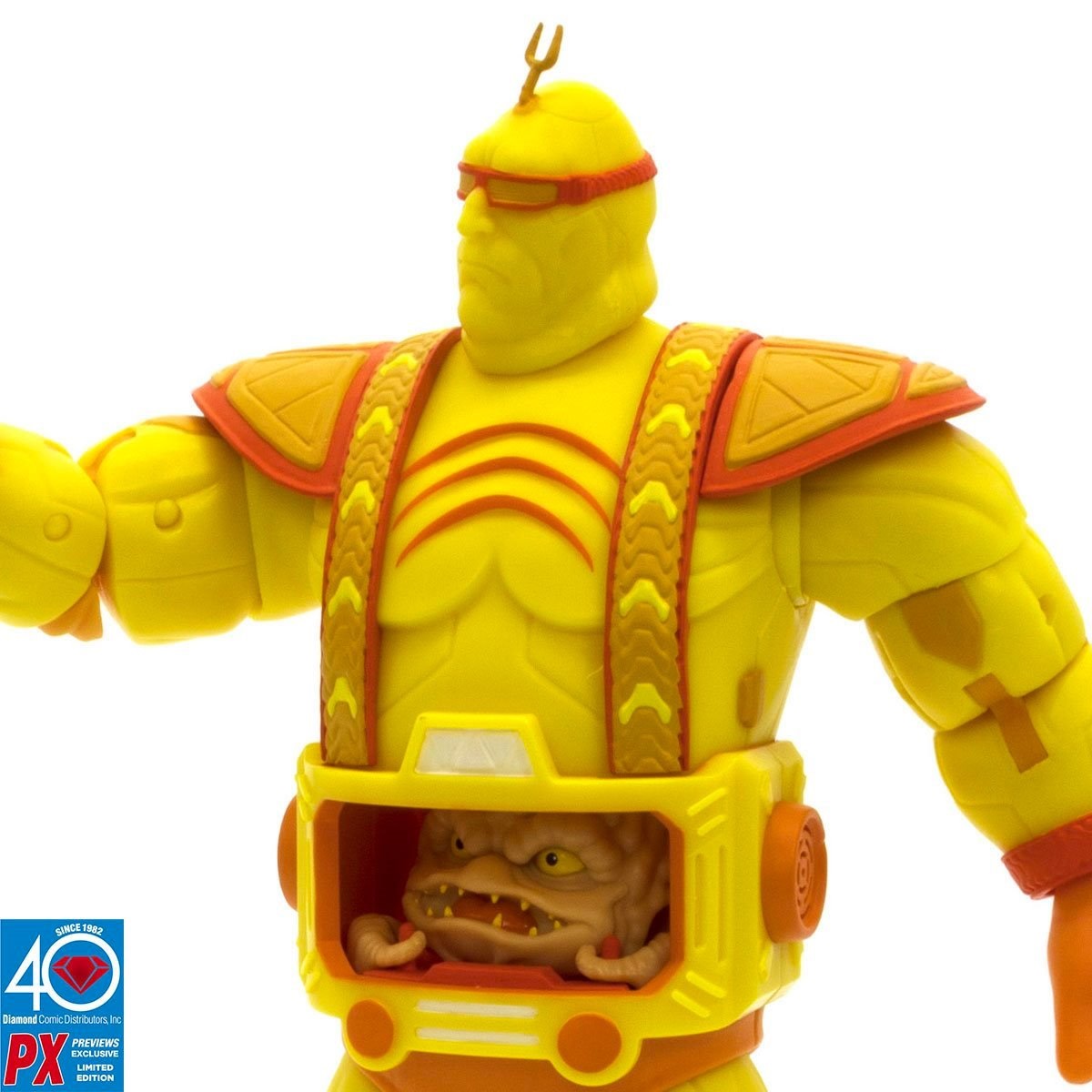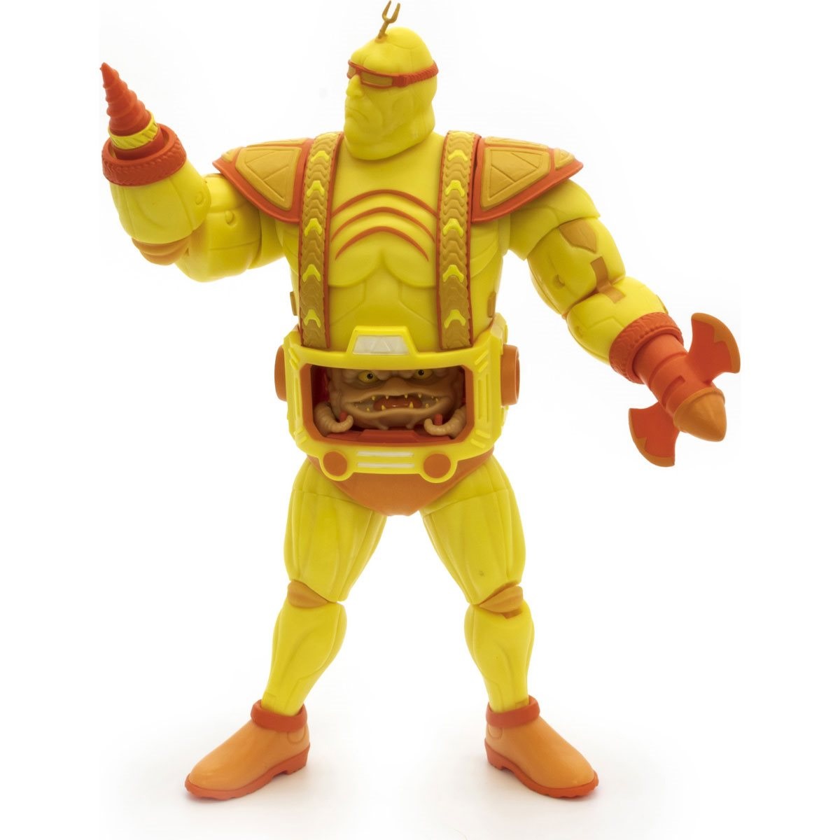 Cette figurine poursuit le style implanté par Loyal subjects des personnages battle damaged des jeux d’arcade, comme Bebop et Rocksteady. La sculpture est identique au Krang qui verra le jour en 2023.