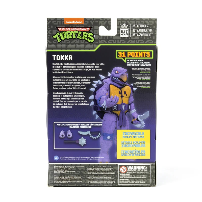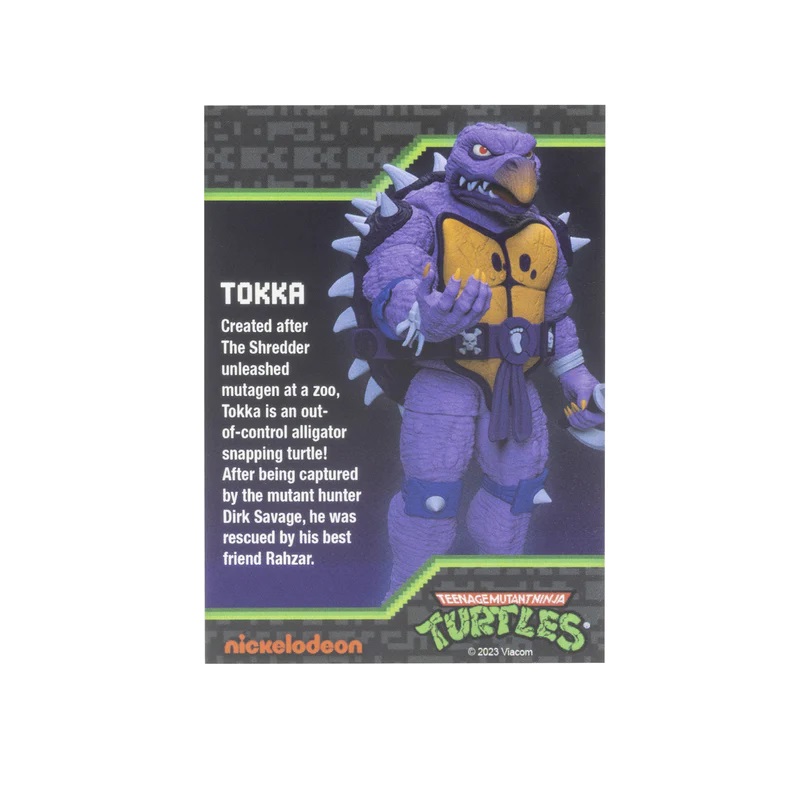 Cette figurine de Tokka, dans la gamme Arcade, était une exclusivité à la San Diego Comic Con. Limité à 500 exemplaires, cette figurine est sortie en parallèle de Rahzar. Par la suite, ces deux personnages ont été également annoncés dans la gamme du dessin animé, ayant le même moule. Seule la peinture diffère.