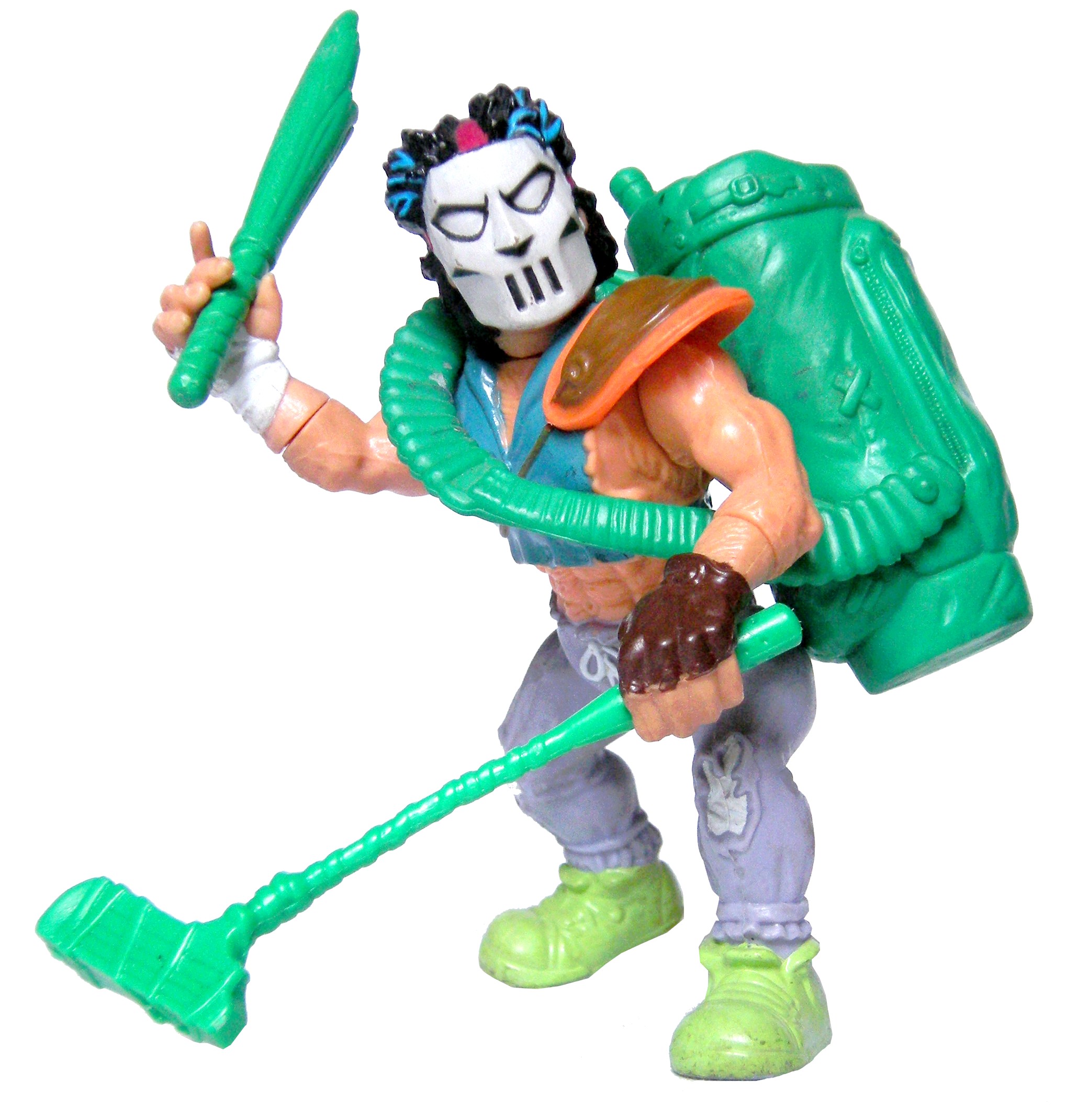 Nous avons donc une transposition du visage du Casey Jones du dessin animé de 2003, portant le masque de celui de 1987 et avec un maquillage de celui de 2012 !