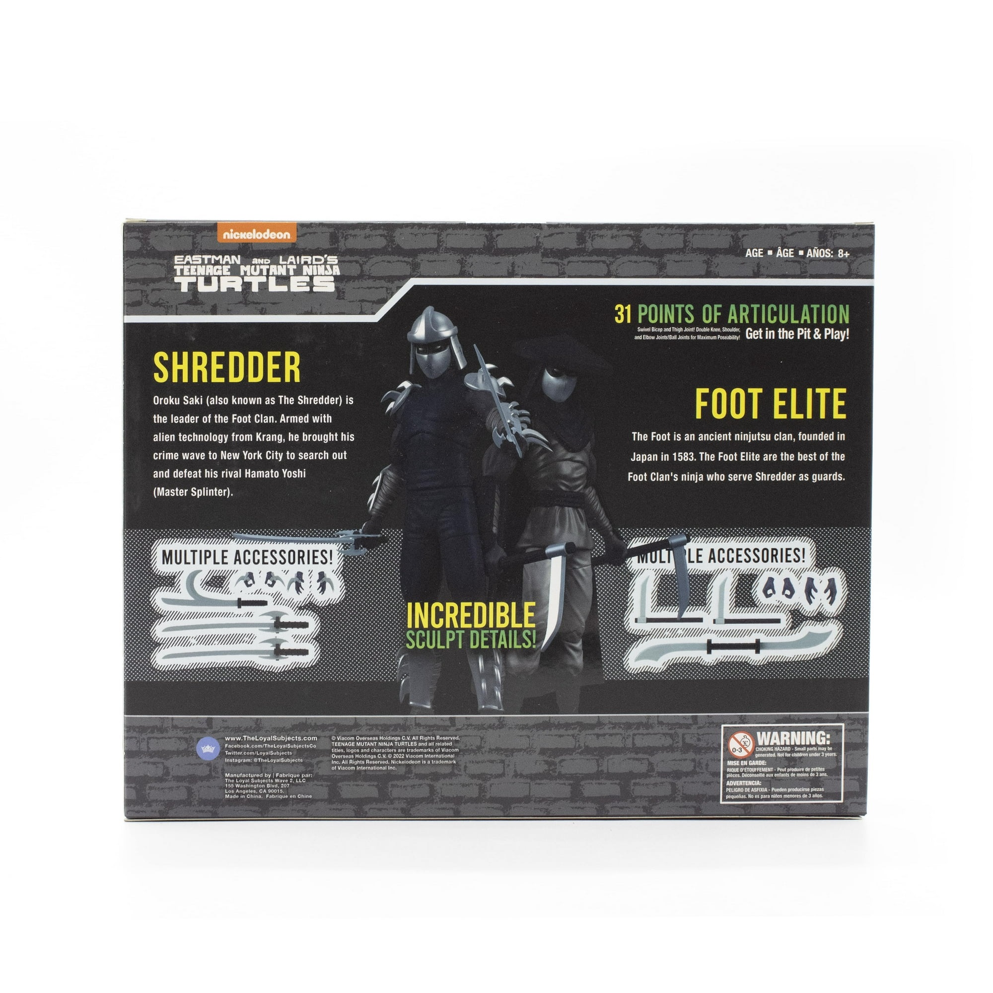 Ces pièces sont sorties fin juillet 2022. Les designs sont identiques à ceux du pack exclusif à la SDCC 2022 reprenant le style Mirage. Ce pack présente Shredder et un Foot d’élite. Parallèlement sont également sorti un pack des quatre tortues et le Foot Soldier Midnight Shadow.