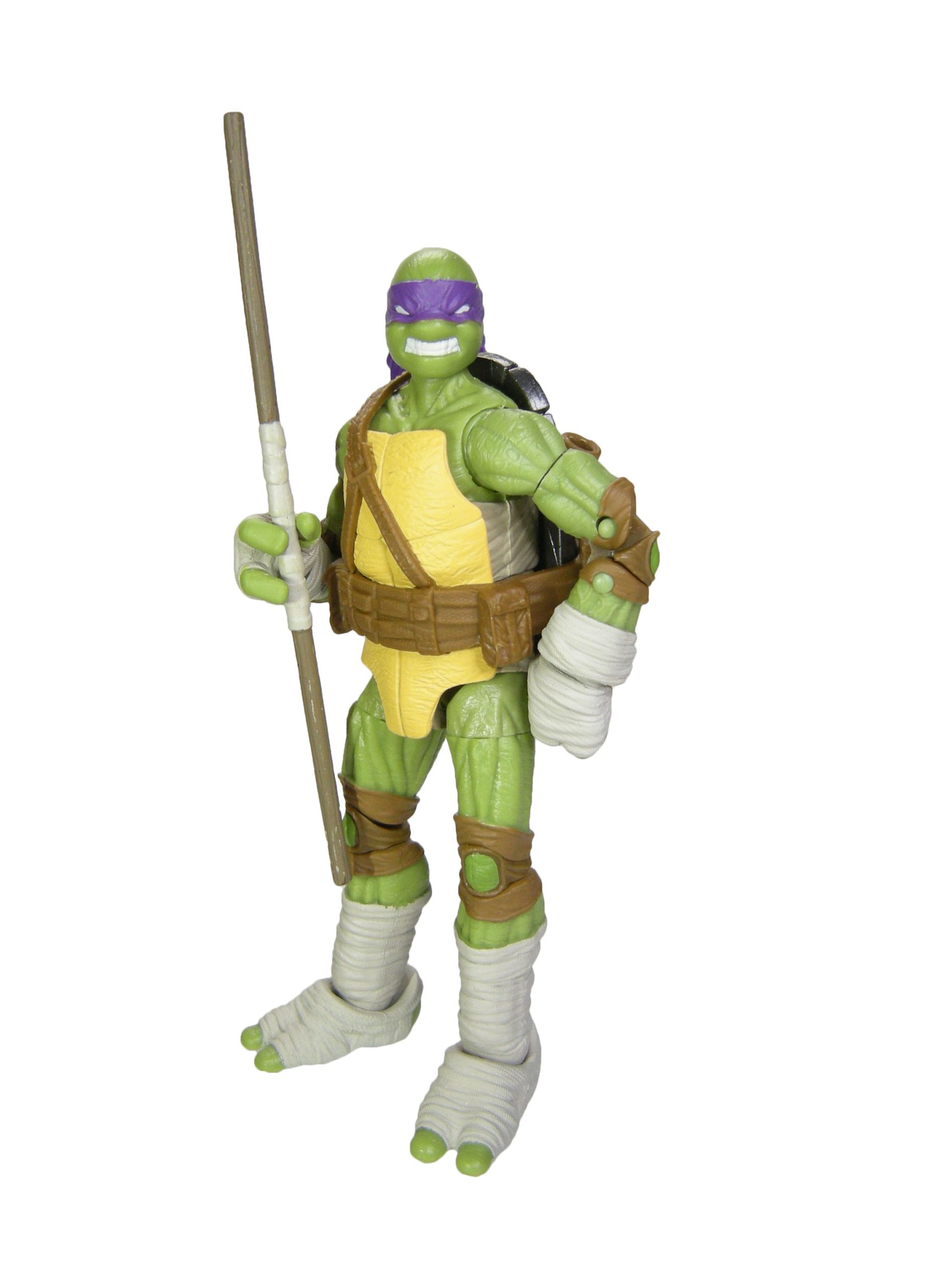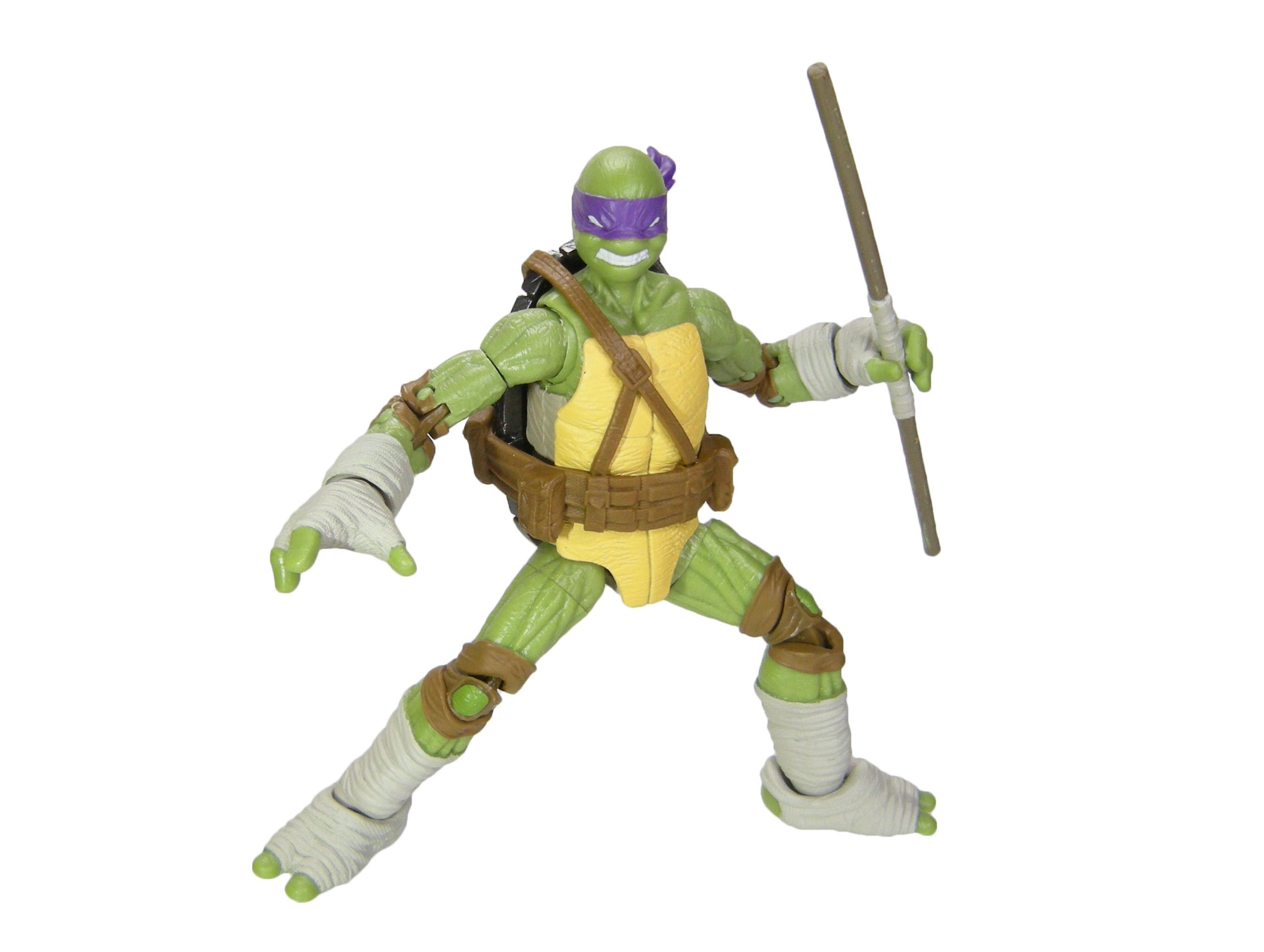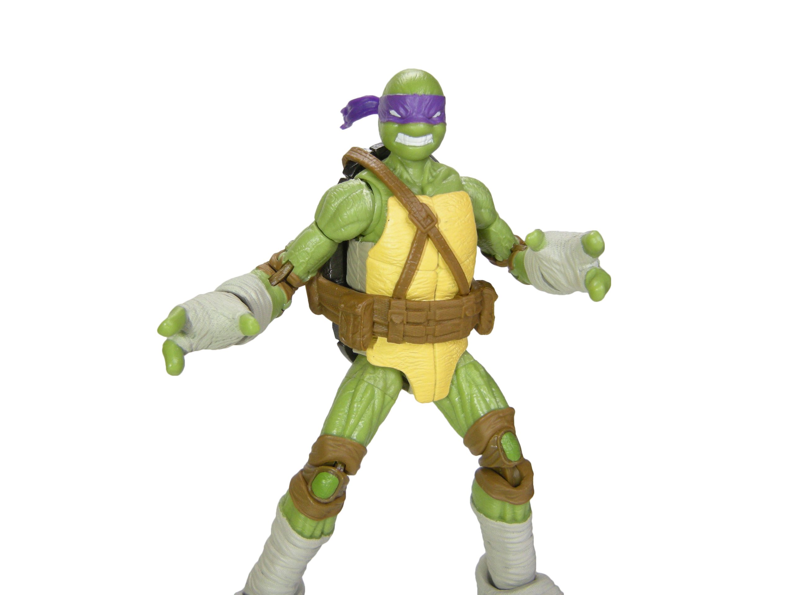 La figurine de Donatello est, comme le reste de ses frères, très détaillée. La peau du mutant est terriblement texturée, entre plis, écailles, veines… Le rendu est très intéressant. À cela, rajoutons également un très bon travail sur les détails du plastron, riches en éraflures. La carapace de Donatello est celle de remplacement (TMNT #50), qu’il obtient après son accident (TMNT #44). Elle est bien plus lisse que celle de ses frères avec de grosses vis qui permettent de la maintenir à son dos. Malgré le fait qu’elle soit en métal, celle-ci présente de profondes éraflures.