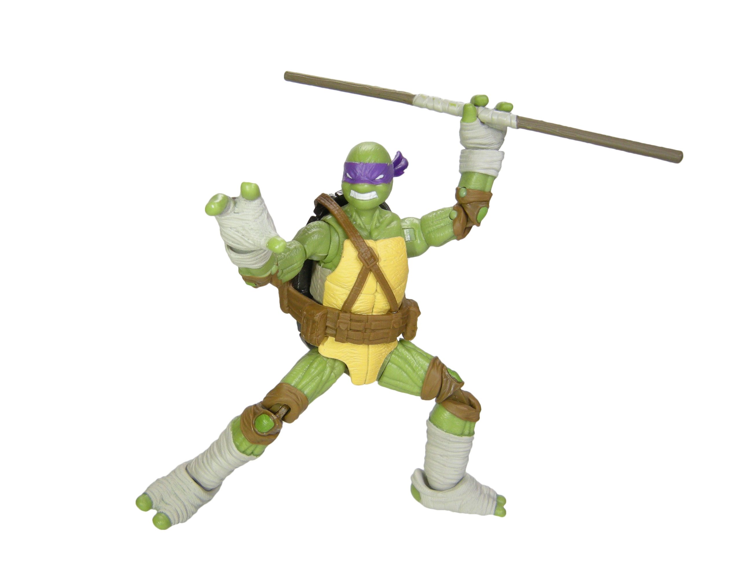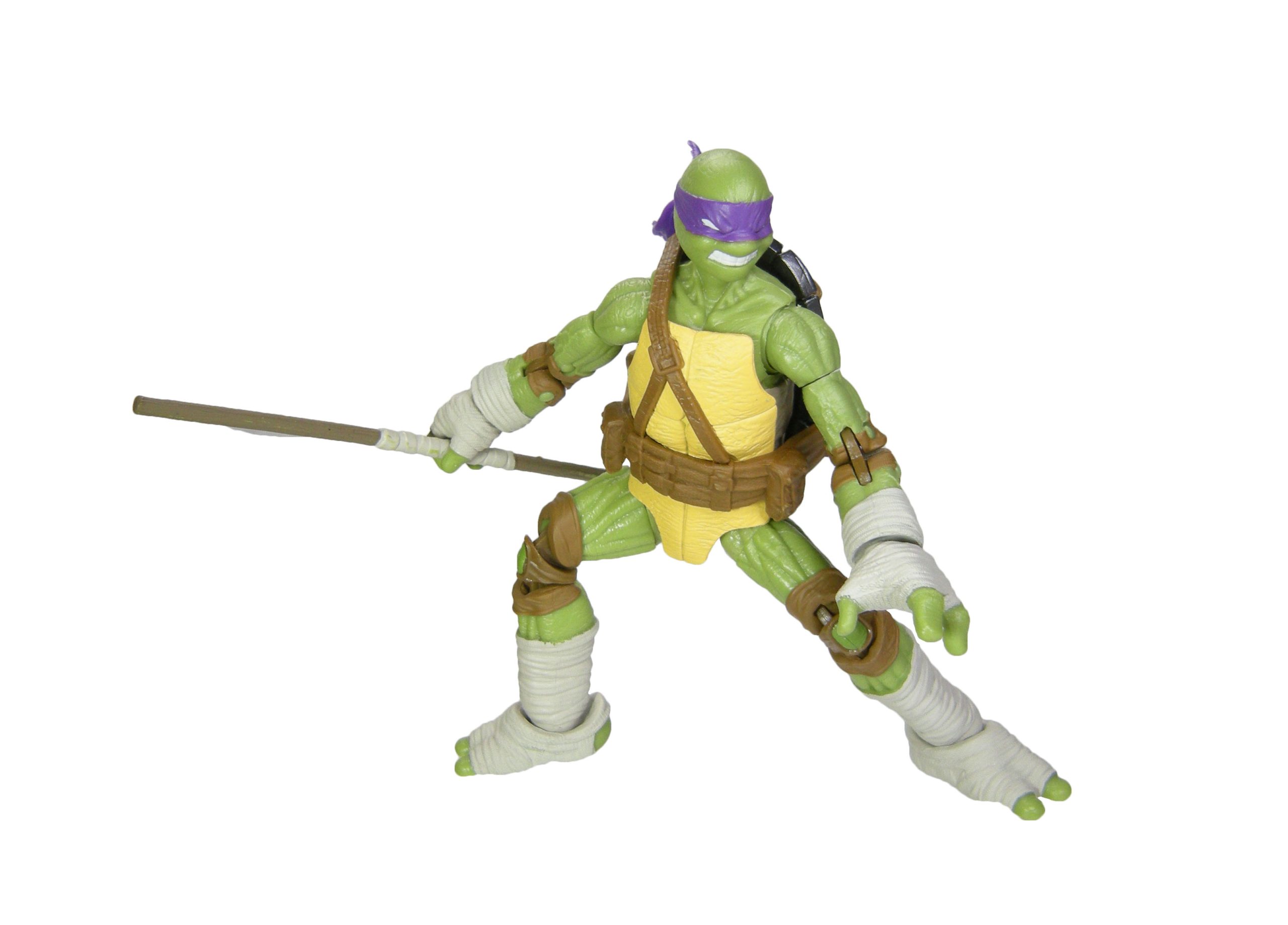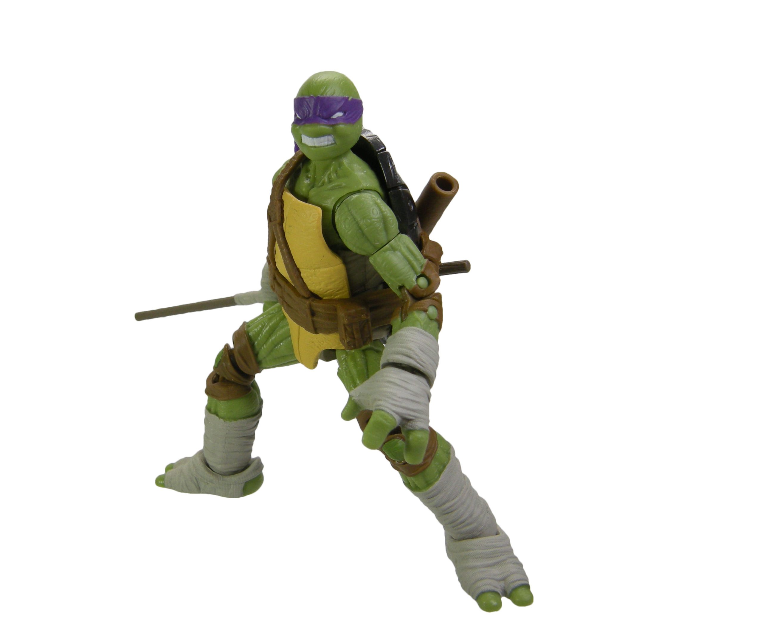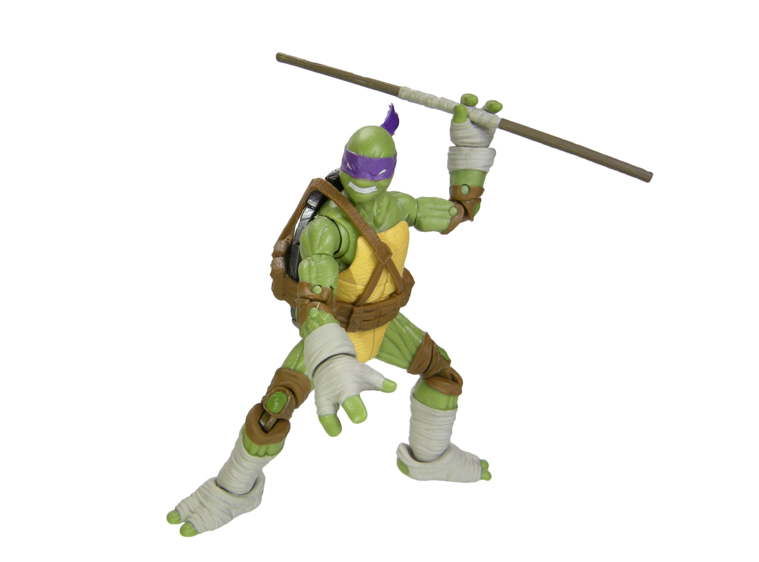 Le bâton de Donatello est malheureusement bien court. Une fois encore les deux mains de la tortue, on sent qu’il manque quelques centimètres de longueur. Par ailleurs, les bandes blanches qui s’enroulent autour sont très épaisses et glissent très mal entre les doigts de la tortue. Elles empêchent également de bien ranger l’arme dans l’étui à la ceinture.