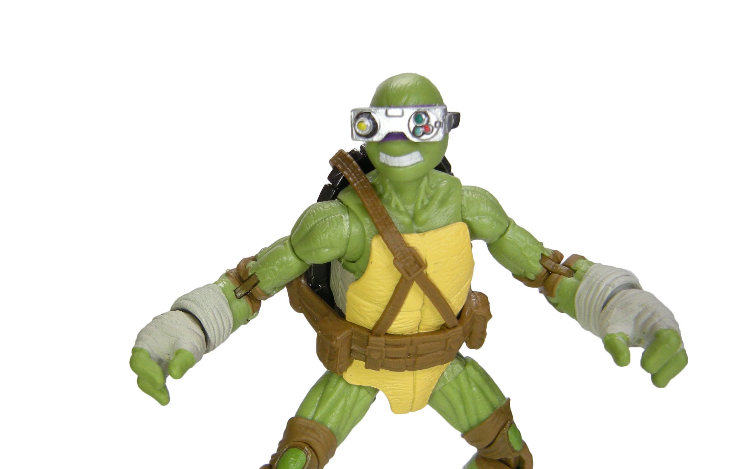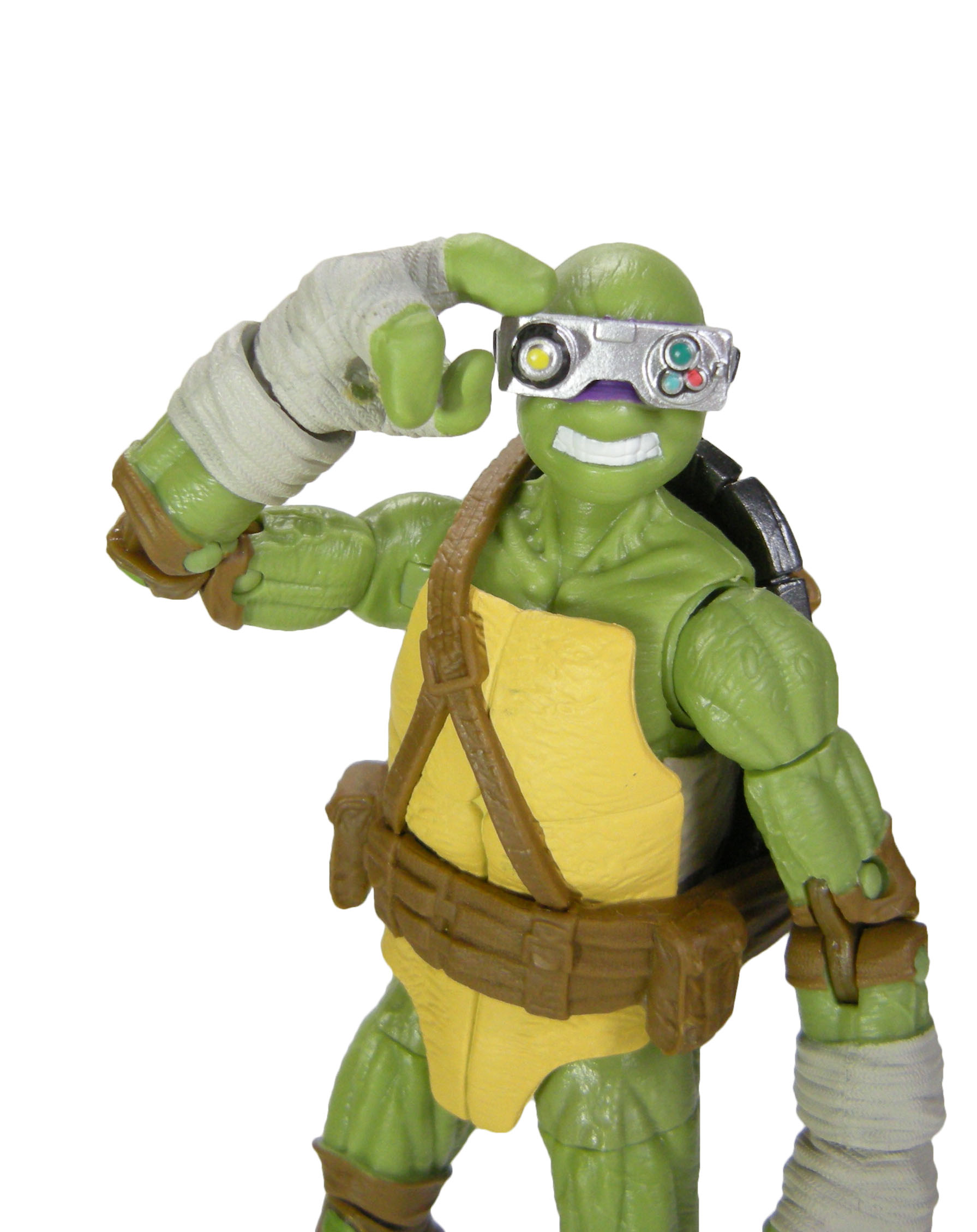L’autre accessoire est une paire de lunettes hi-tech. Elles sont entièrement réalisée en plastique rigide et à glisser autour de la tête de la tortue. Si généralement TLS a pour habitude de rajouter des accessoires qui n’existent pas dans l’univers pour garnir les packs, je suis assez incertain pour ces lunettes. Je n’ai pas le souvenir de les avoir vues dans les pages des comics. Mais je n’affirmerai rien les concernant.