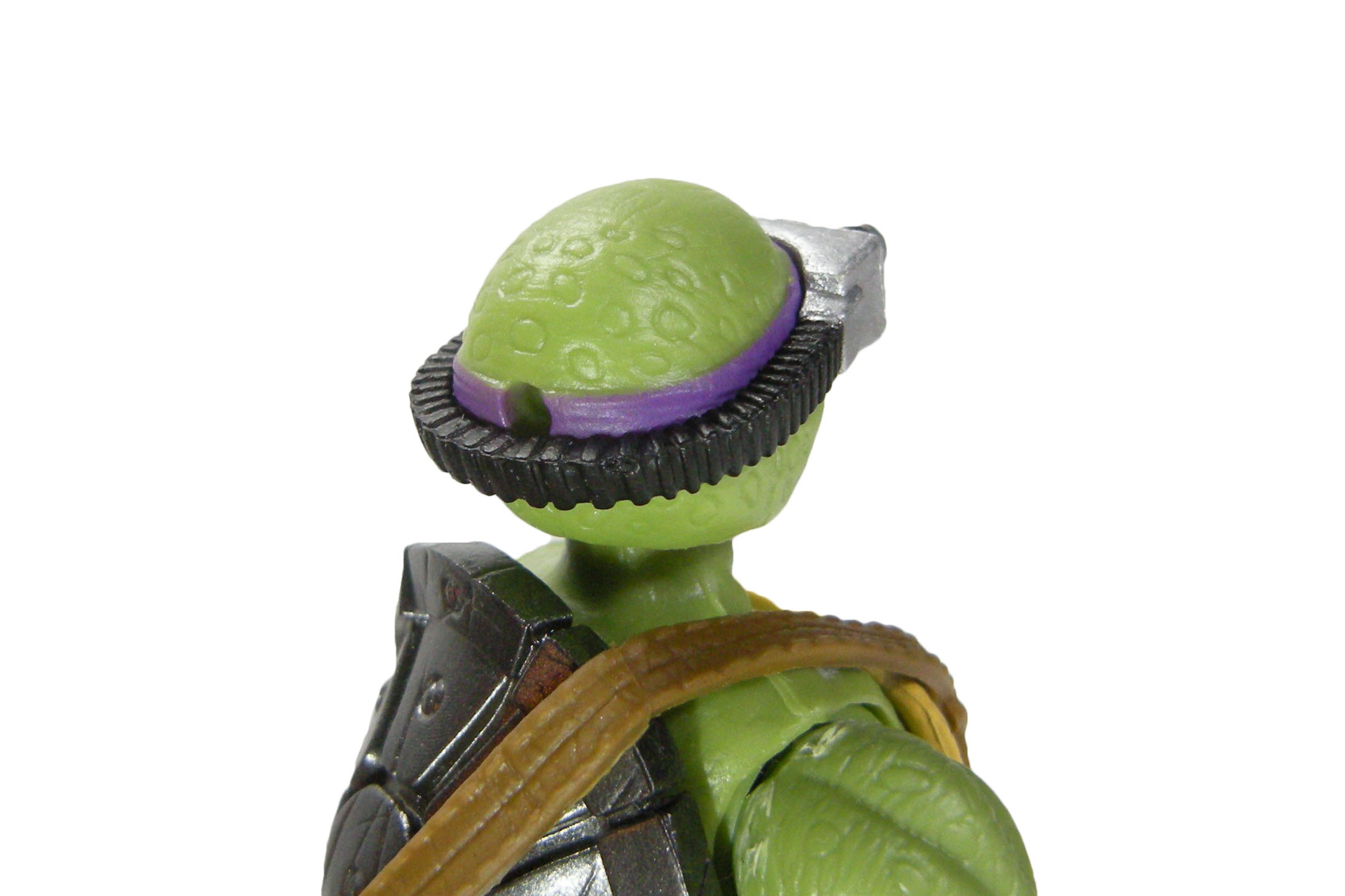 Ces deux têtes sont pourvues d’un même bandeau, en double. Celui-ci peut être très facilement retiré grâce à un peg et un trou situé à l’arrière du crâne de la tortue. Je n’ai pas bien compris pourquoi permettre de le retirer, ou en fournir deux avec la figurine. Sans doute car il est plus simple à produire ainsi. Très fragile de fait, le changement de tête aurait eu raison de lui s’il était resté collé à la figurine.