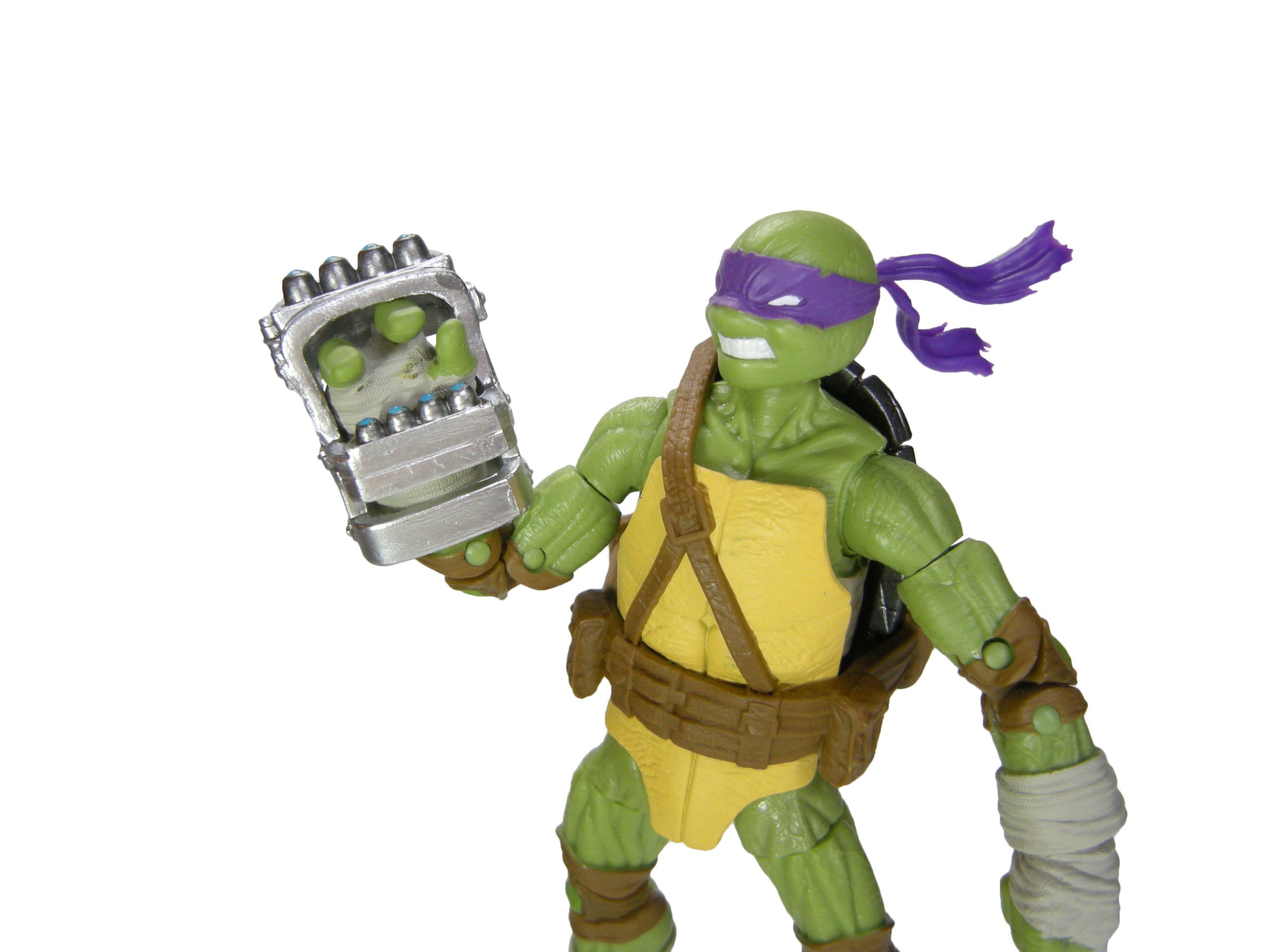 Les autres accessoires qui accompagnent Donatello sont très différents de ceux que The Loyal Subjects a attribué aux autres tortues. Nous avons le célèbre gant anti-gravité, conçu par Harold Lillja et utilisé par le ninja dans le TMNT #27. Vous pouvez le mettre à la main guache ou à la main droite. Aucun problème !
