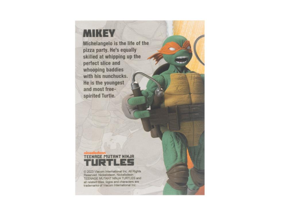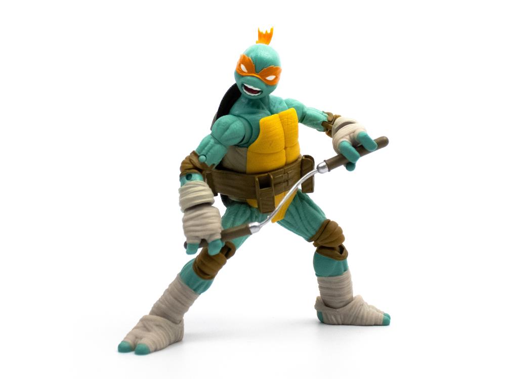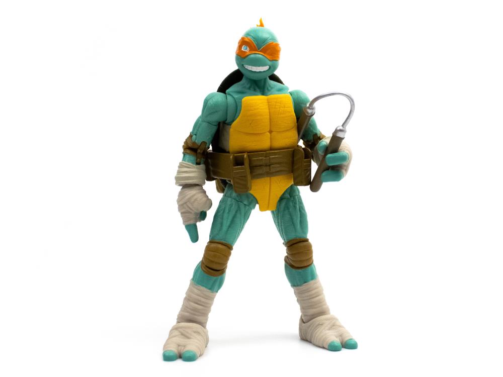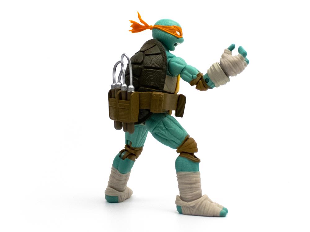 Cette figurine, comme les autres frères, a été conçue informatiquement par Ronny Firman, en collaboration avec The Magic Wand Studio. Il est déjà à l’origine d’un grand nombre de figurines Tortues Ninja pour The Loyal Subjects. L’artiste présente brièvement un prototype sur son portfolio sur ArtStation. Il ajoute également que James English a travaillé sur quelques détails de la figurine. Ce dernier ayant participé aux détails des vêtements de la figurine de Super Shredder, également chez The Loyal Subjects, il n’est pas impossible que James ait travaillé sur les détails de la peau de la tortue ou des tissus comme les bandelettes et ceintures de Michelangelo.