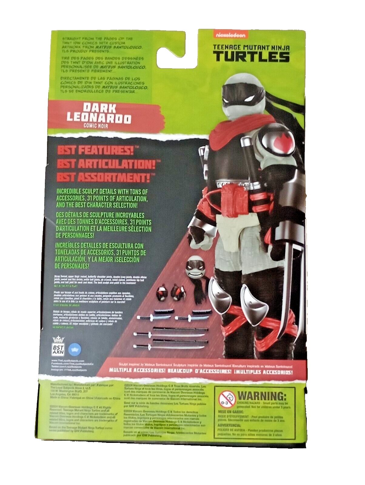 Au début du mois de juillet 2024, The Loyal Subjects a révélé plusieurs de ses figurines exclusives pour la Comic Con de San Diego. Parallèlement au Dark Leonardo dans ses couleurs classiques, le fabricant a également lancé, de manière très discrète, la version « Comic noir« . Celle-ci est strictement identique hormis la peinture, mettant en avant une figurine noire et blanche avec des rehauts de rouge.