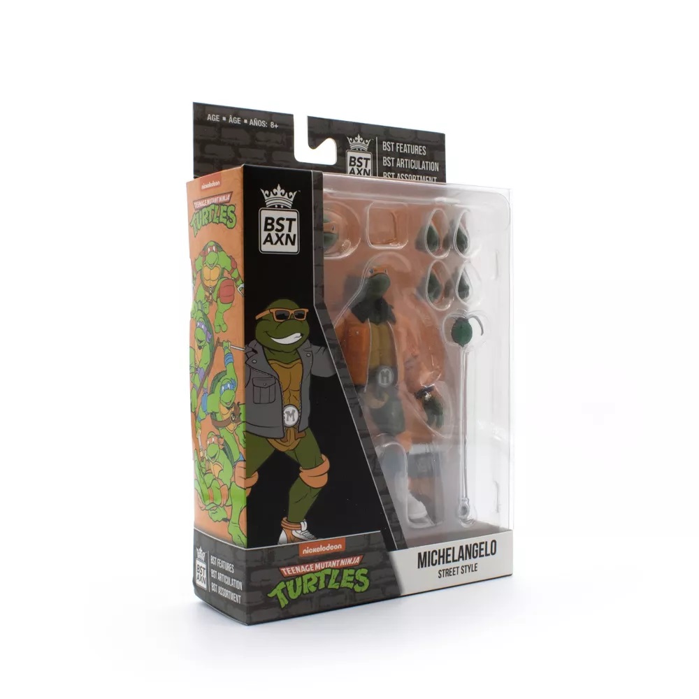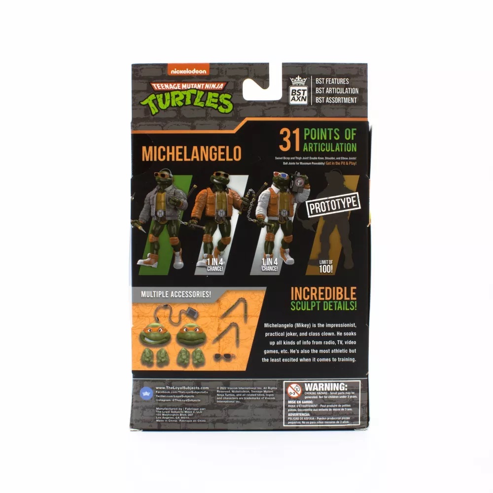 Fort du succès rencontré avec ses figurines Tortues Ninja BST AXN, The Loyal Subjects a tenté quelque chose d’encore inédit avec la gamme à l’échelle de figurines d’action. Il a lancé 4 packs de quatre tortues dans un style de rue, mélangeant ainsi les costumes. Si la plupart des boutiques proposent en général les assortiments avec un contenu précisé, certaines enseignes comme Target proposait les figurines à l’unité pour 19,99$.