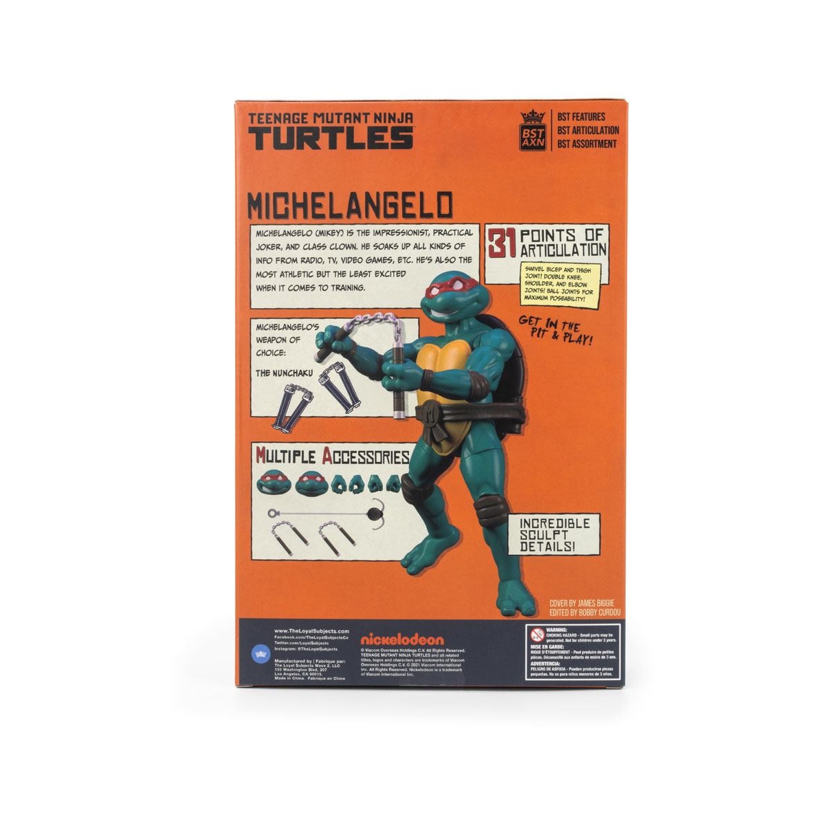 La sculpture des figurines est comme toujours inspirée des versions régulières des TMNT BST AXN, reprenant elles-mêmes les figurines S.H. Figuarts de Bandai sorties en 2016. Chaque pack, devant sortir le 22 juillet et le 6 août 2022, est vendu 29,96$ chez Walmart et comprend une figurine et un comic.